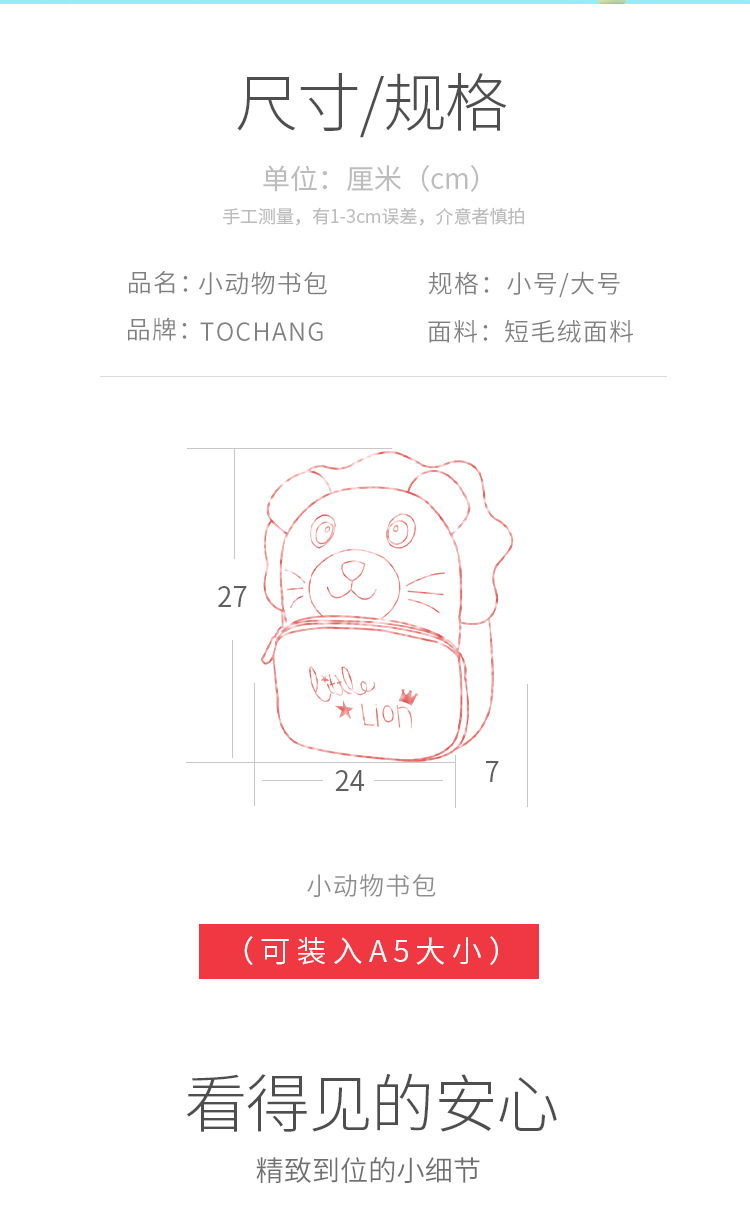 【宝贝的时尚主义】童畅动物园系列可爱儿童书包减负双肩包毛绒背包幼儿园书包