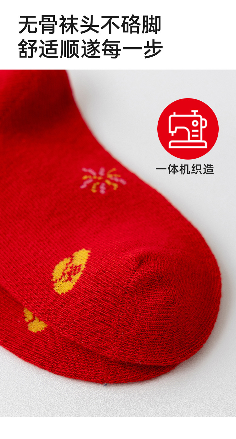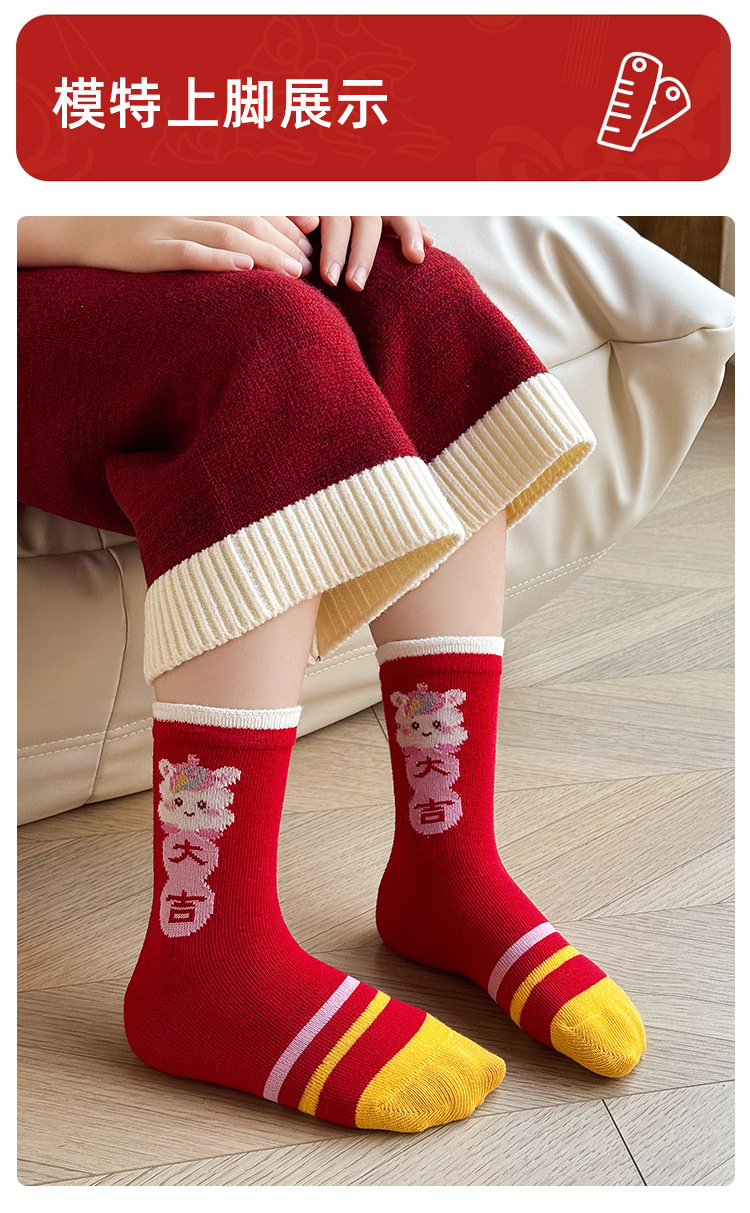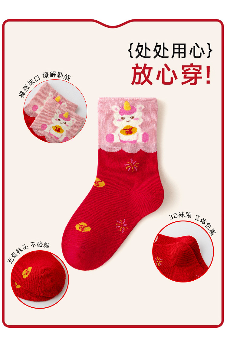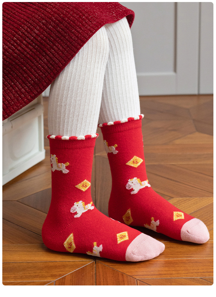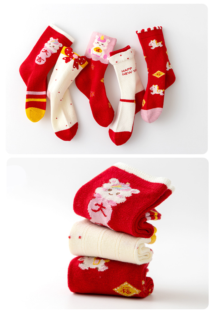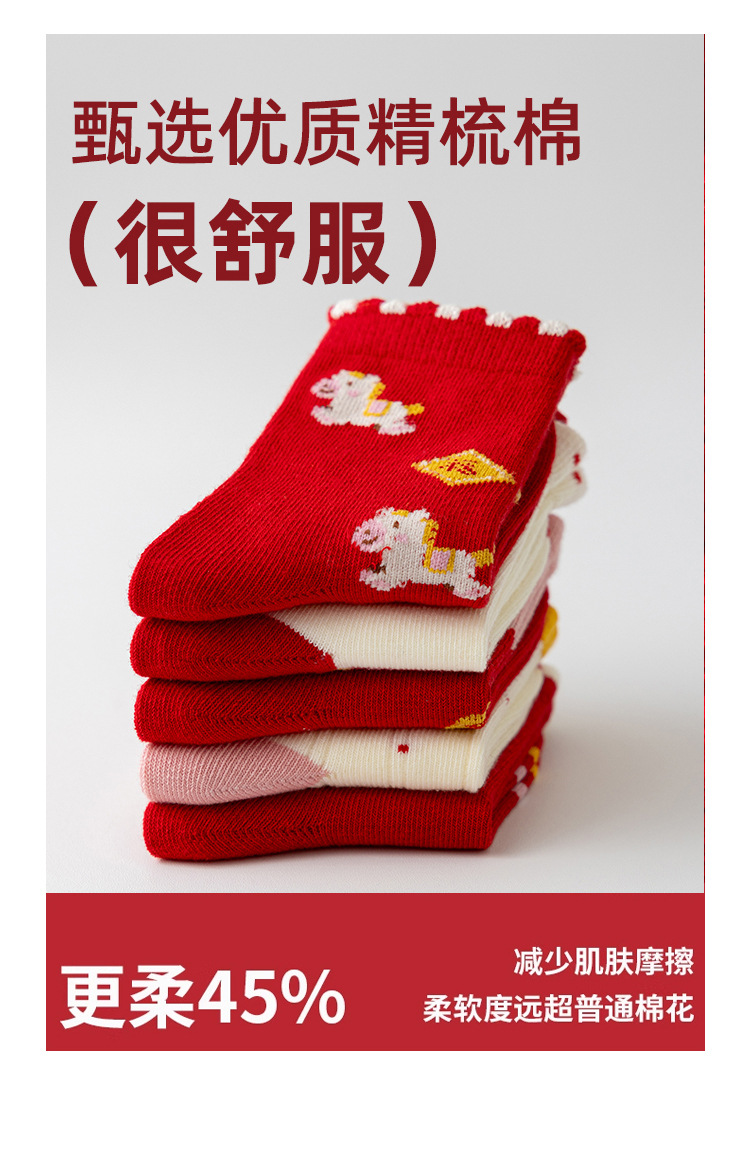 【5双装❗️过年就得穿年袜🔥A类儿童袜】红袜相伴,步步生辉,跟紧好运,红色新年袜无骨中筒袜精梳棉袜子本命年马年新年男童女童袜子
