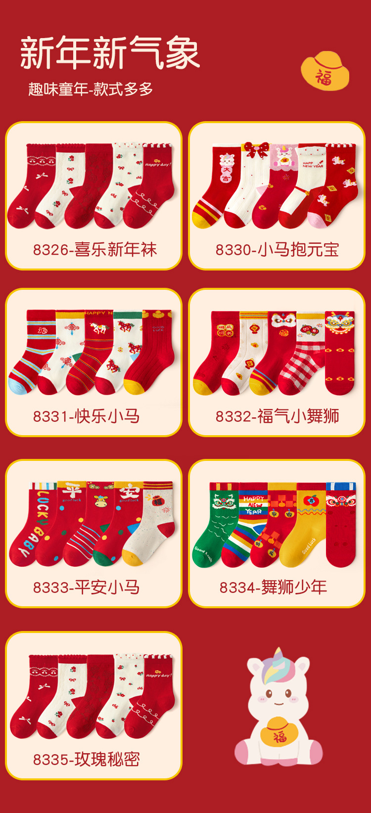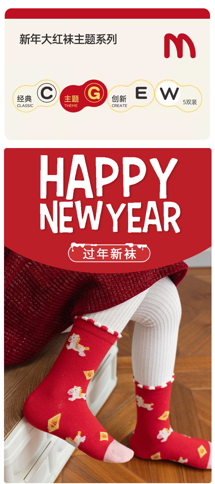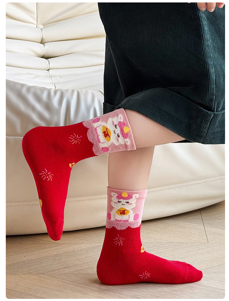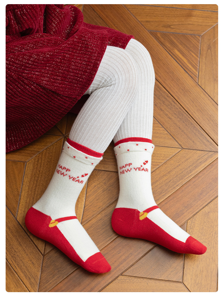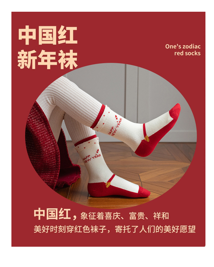 【5双装❗️过年就得穿年袜🔥A类儿童袜】红袜相伴,步步生辉,跟紧好运,红色新年袜无骨中筒袜精梳棉袜子本命年马年新年男童女童袜子