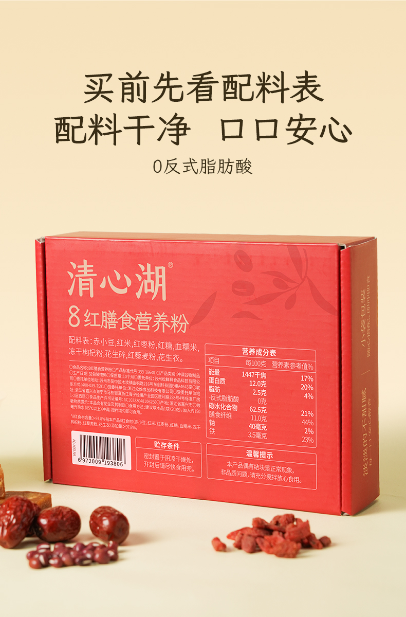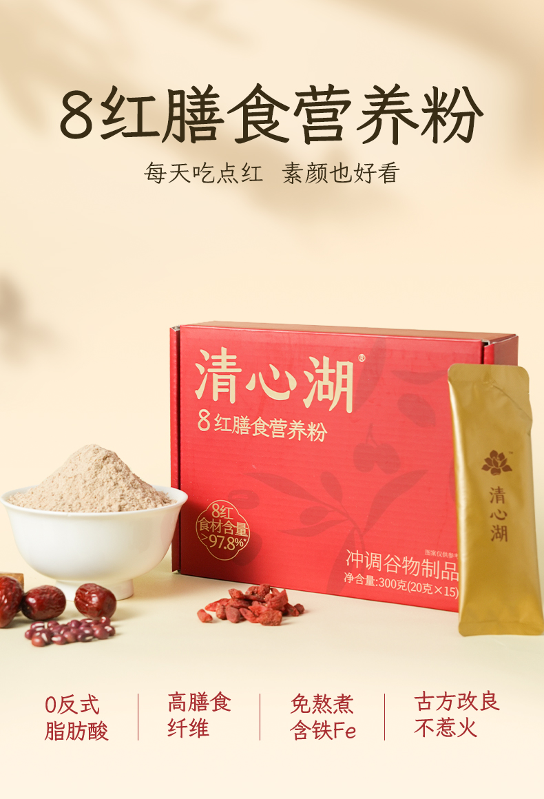 【清心湖】8红膳食营养粉(内含15袋) 8种红色食材科学配比 营养均衡 谷物香味浓郁 冲泡后香甜丝滑 独立包装一次一包 营养代餐