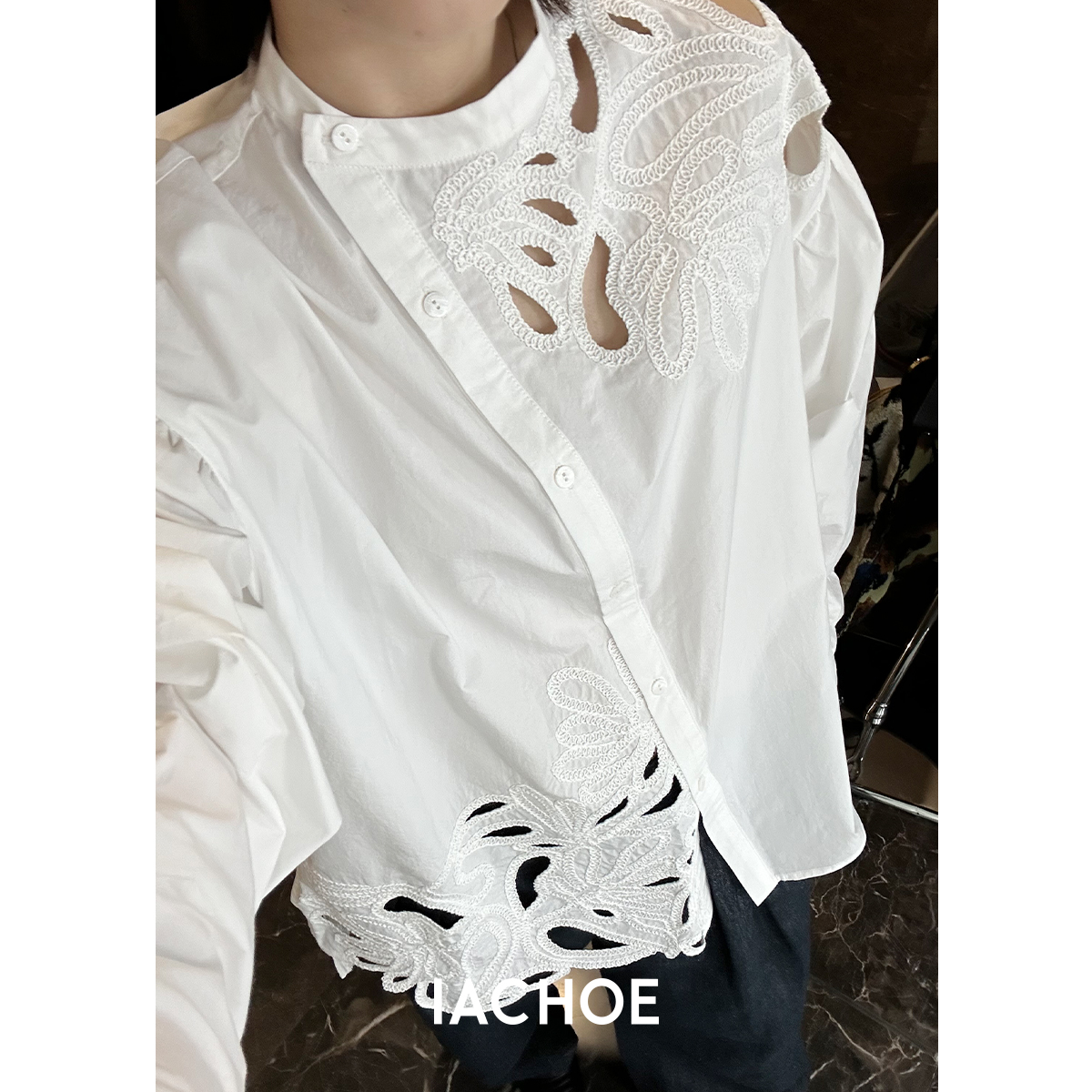 棉仓3561504005-IACHOE镂空绣花衬衫