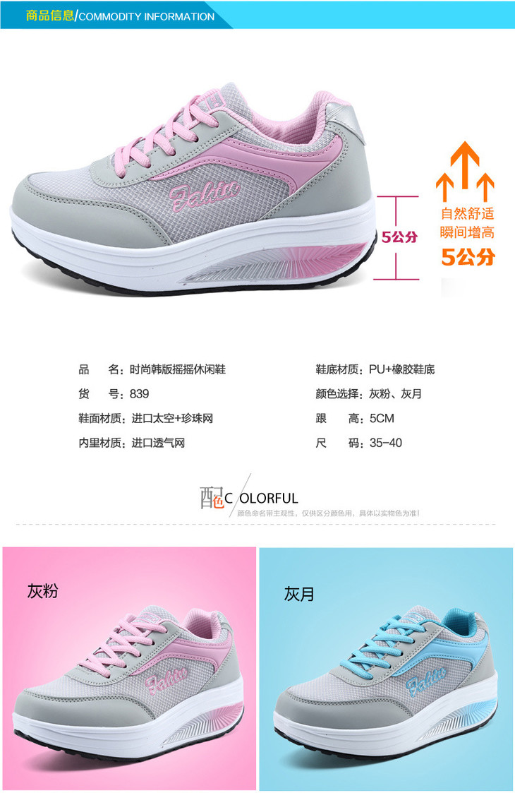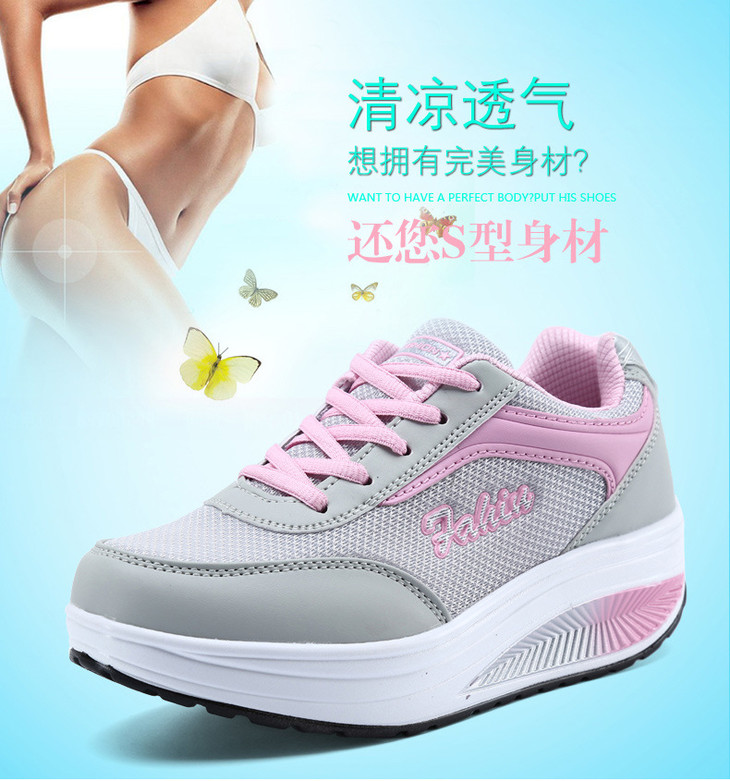【户外运动】摇摇鞋女网面透气运动鞋女韩版跑步鞋子女春秋季透气厚底休闲鞋女