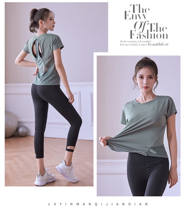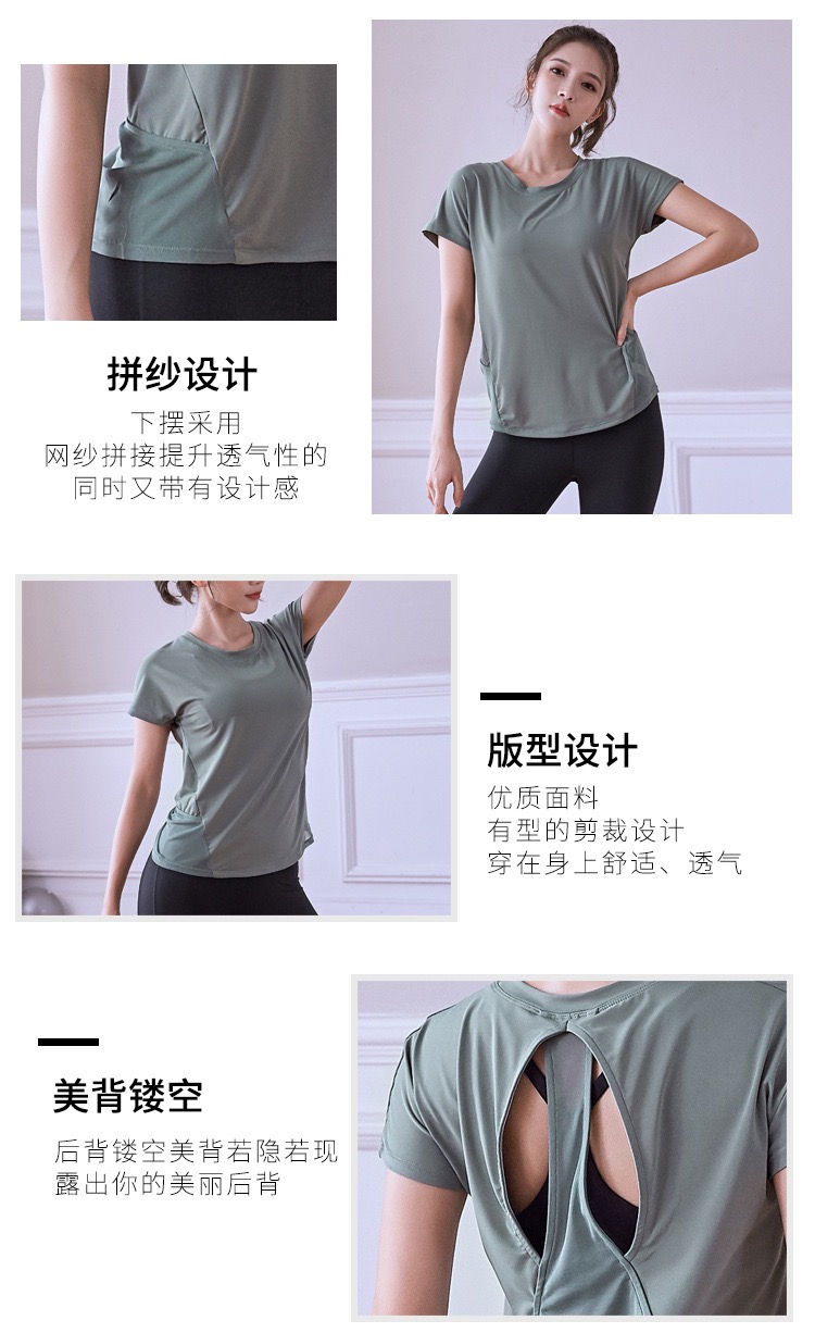 【热销】瑜伽服运动T恤速干衣女显瘦跑步罩衫透气健身短袖上衣夏速干紧身 000DX805QC