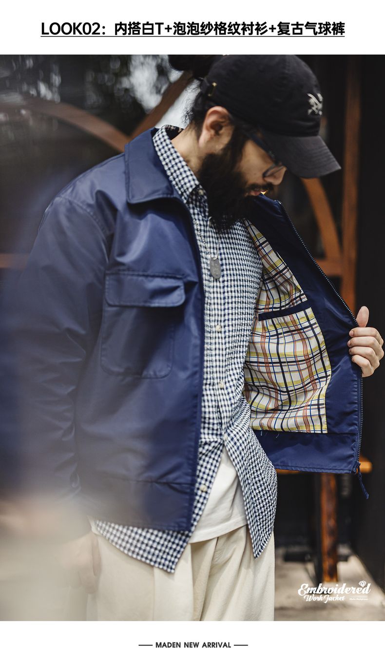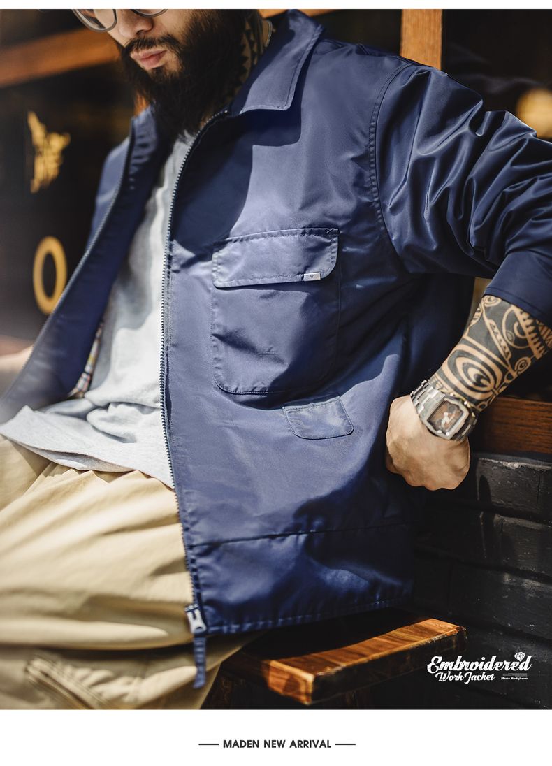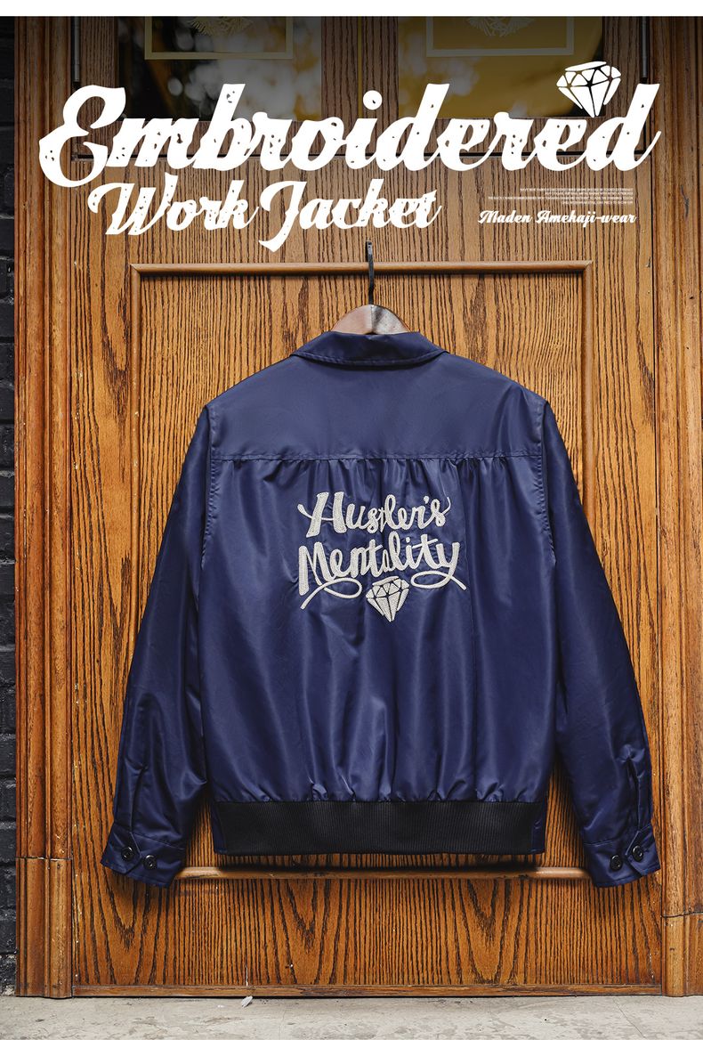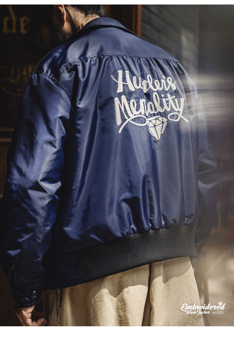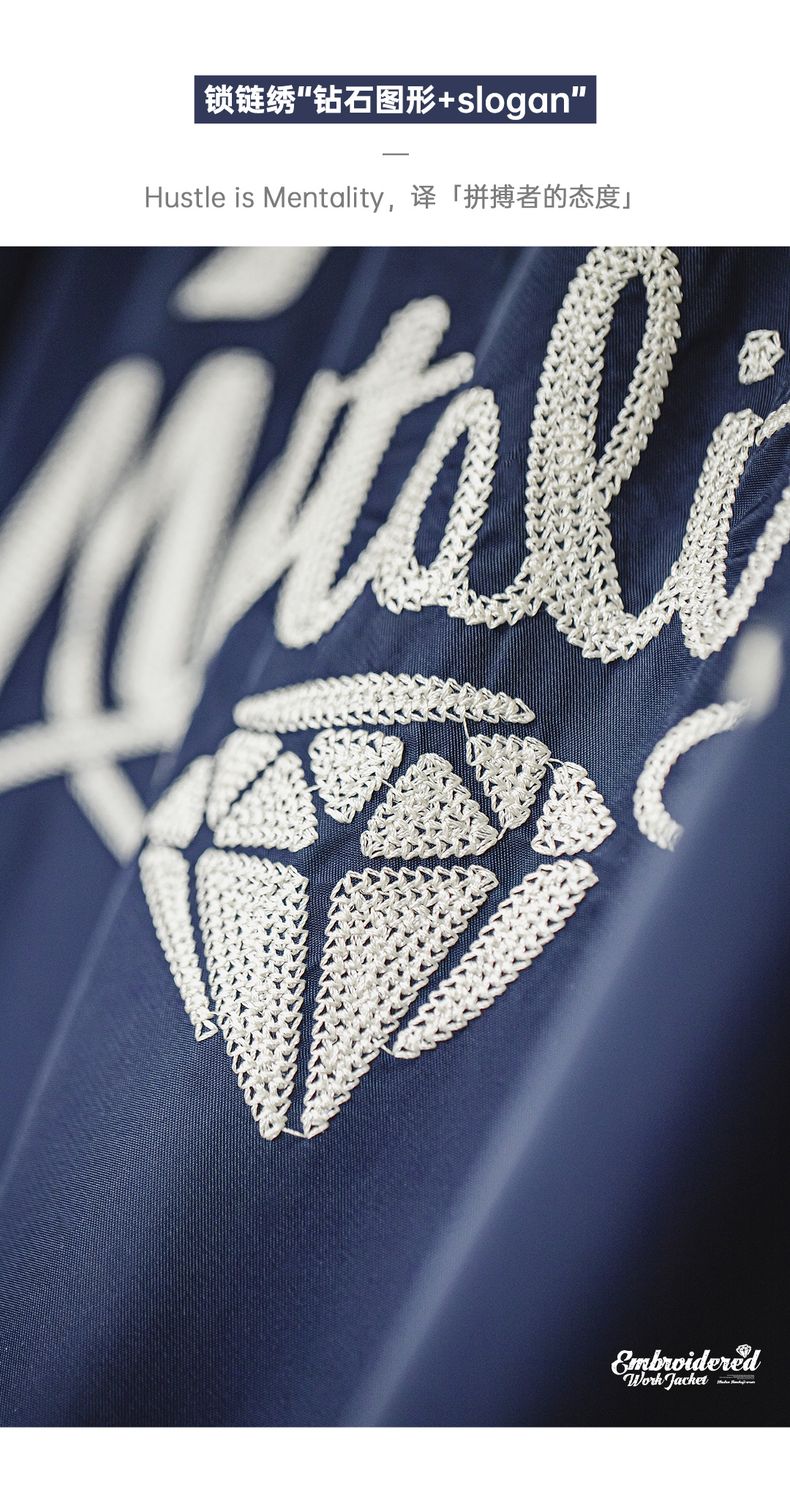 工装优选 美式复古海军蓝刺绣夹克字母翻领拉链尼龙休闲外套男秋冬