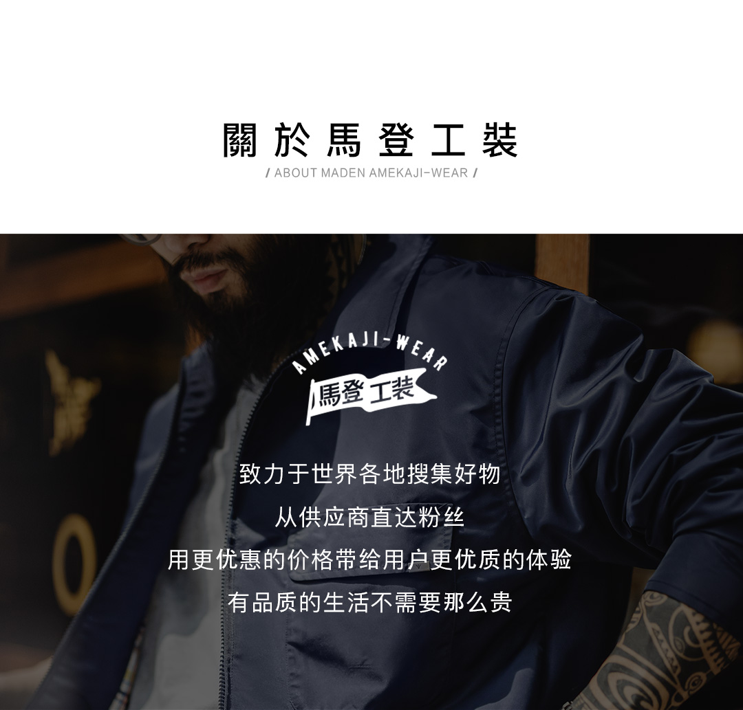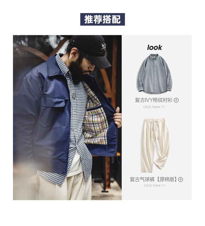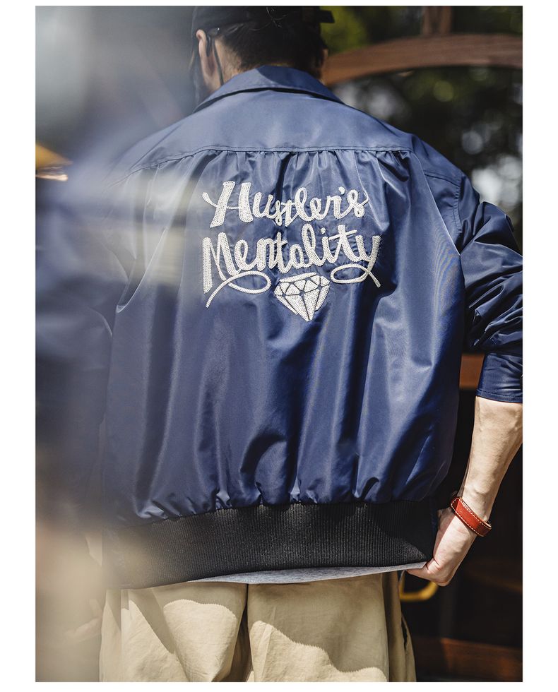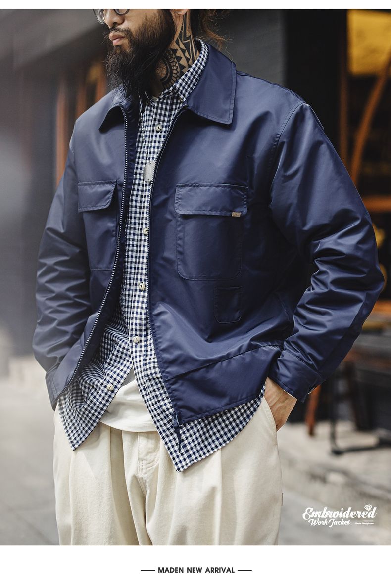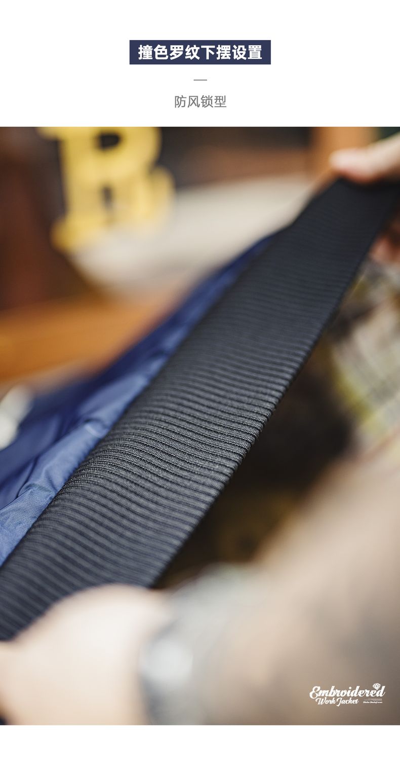 工装优选 美式复古海军蓝刺绣夹克字母翻领拉链尼龙休闲外套男秋冬