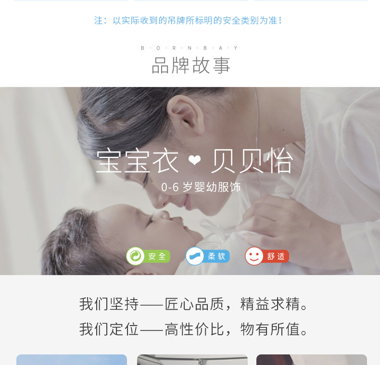 - 贝贝怡专注0-6岁婴幼儿服饰,坚持安全、柔软、舒适的产品理念,为千万中国家庭提供超高品质、安全可靠的婴幼儿服饰产品,妈妈放心,宝宝开心!