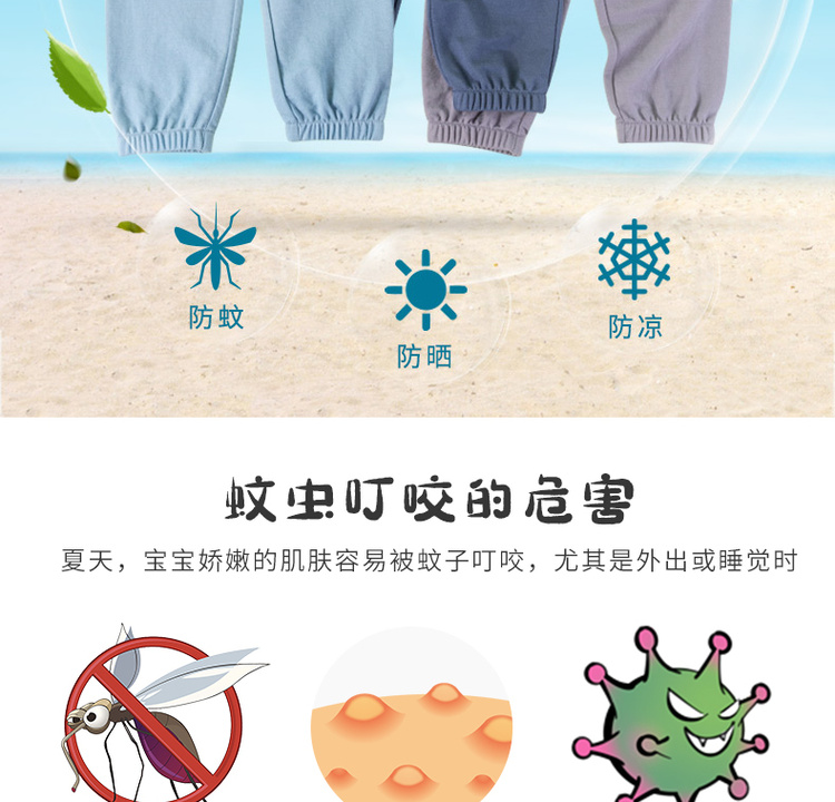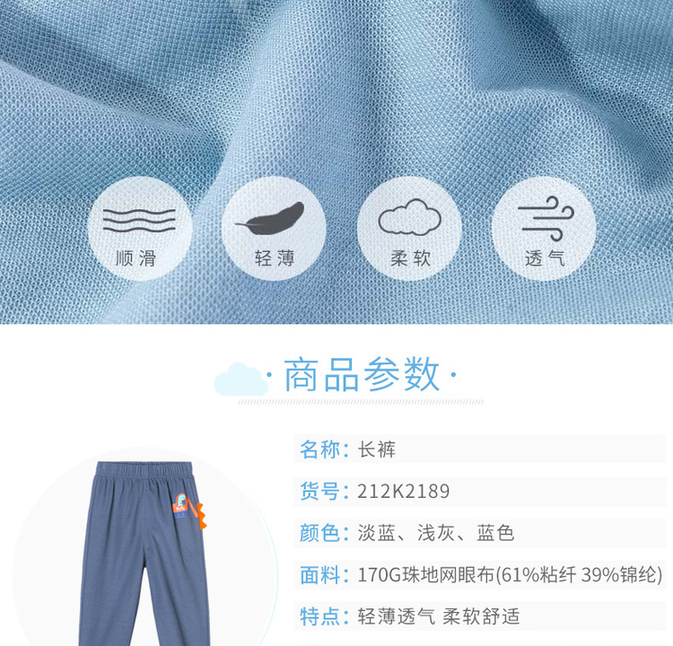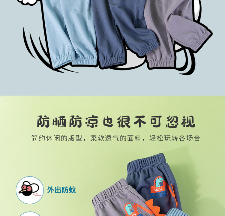 贝贝怡春夏新品男童宝宝儿童薄款凉爽宽松防蚊裤休闲裤裤子212K2189
