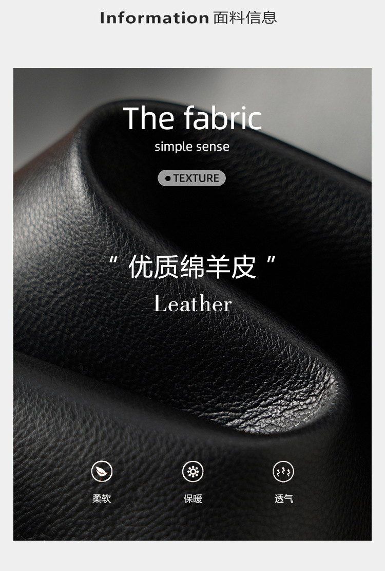 绵羊皮材质,柔软舒适,质感高级,彰显你的独特品味。