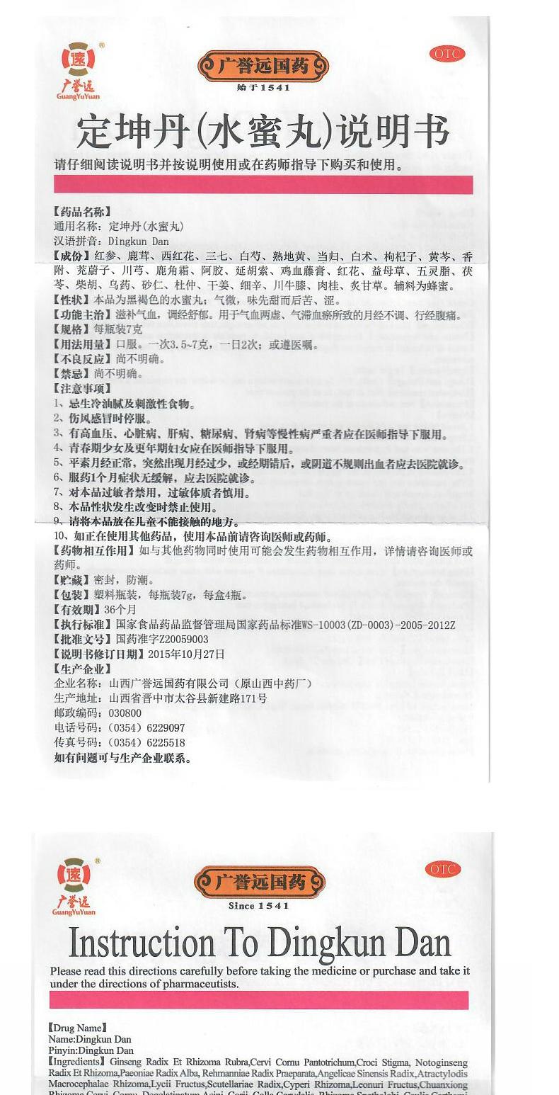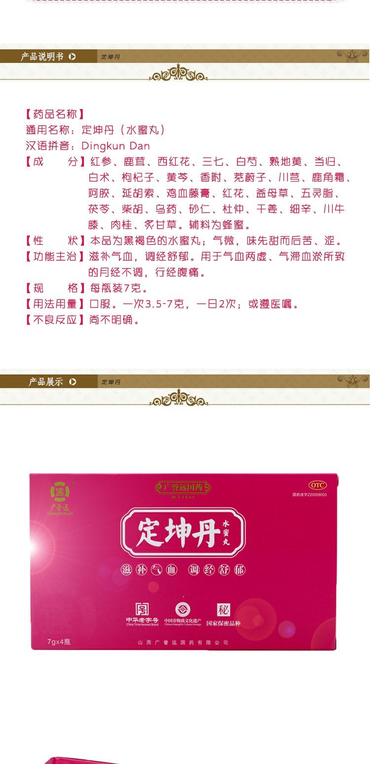广誉远定坤丹水蜜丸月经不调舒郁气血两虚滋补气血腹痛调经7g*4瓶