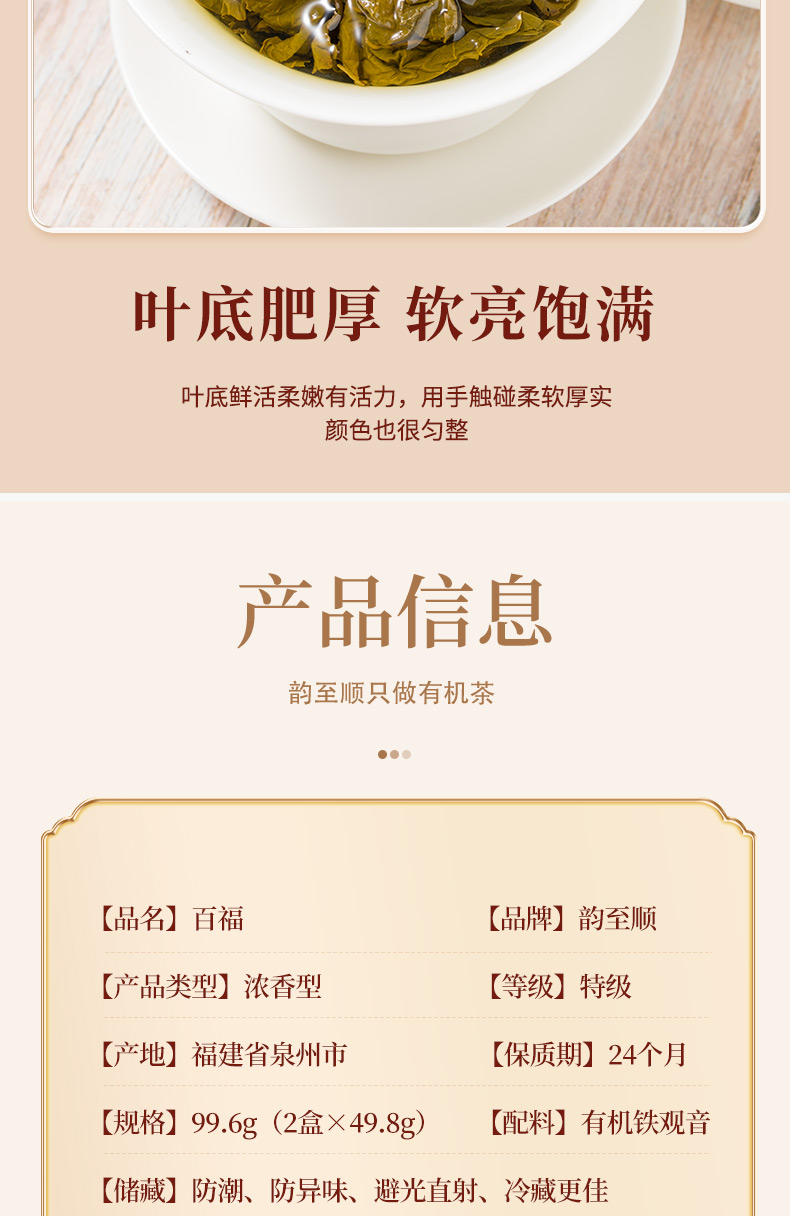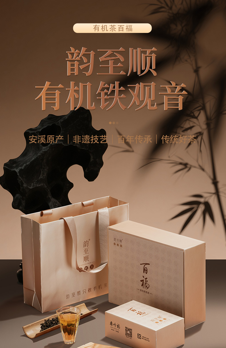 【百福礼盒装】韵至顺 有机乌龙茶 有机铁观音 百福礼盒装 99.6克/盒 送手提袋1个