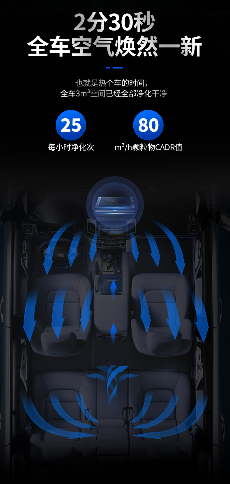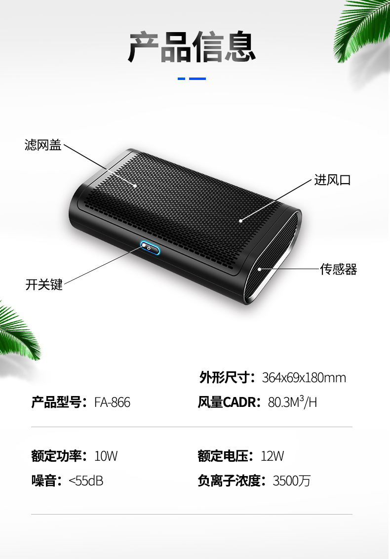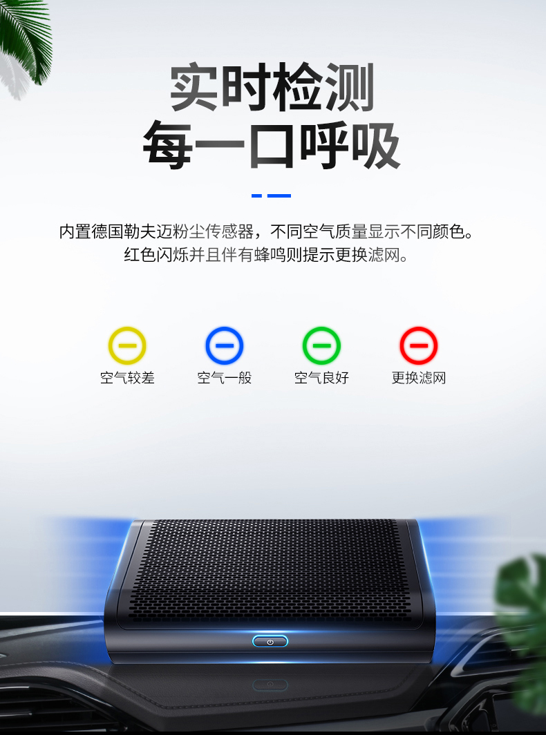 美国舒乐氏(SOLEUSAIR)车载空气净化器 新车除甲醛负离子去烟味异味车用智能高效过滤PM2.5