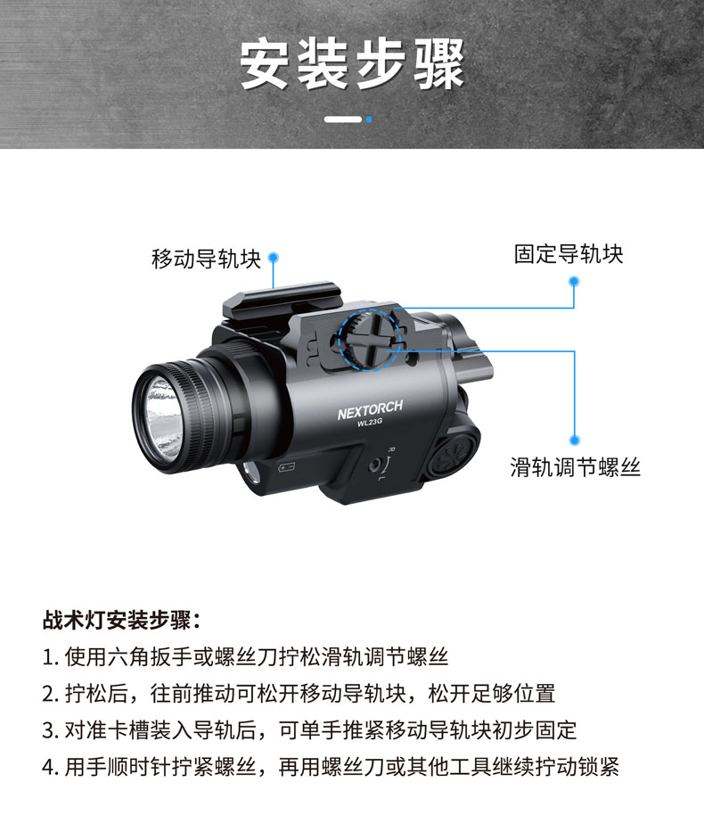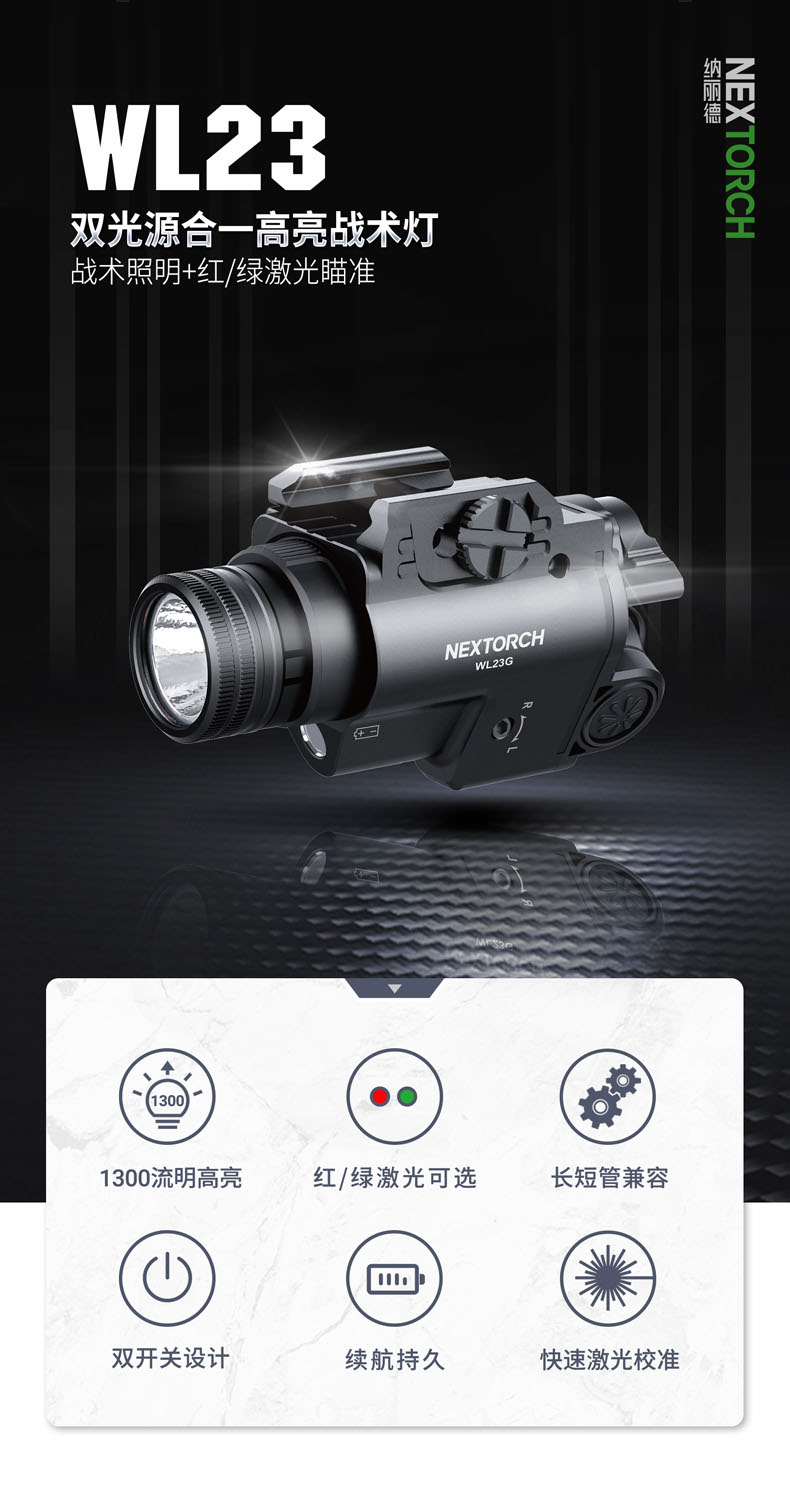 纳丽德(NEXTORCH)WL23战术灯双光源合一下挂灯瞄准