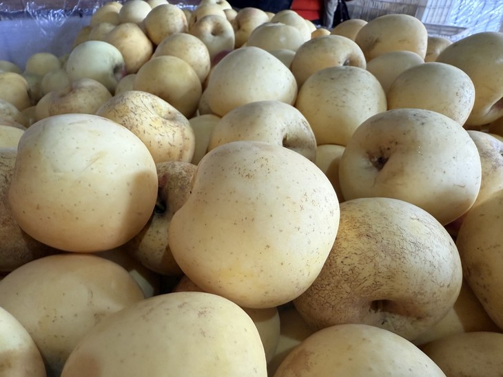 晚熟苹果(红富士🍎)在成熟期遇到40多天的连续下雨天,在烟台苹果的发展史上还是头一回。每年九月底开始的去袋工作,我们这次没有做,也就不着色了。因此今年的果子不红而是微黄。黄色也还好,大部分还带有多多少少的水纹。人家是网纹瓜,我们有网纹果。有点难看了,但越是这样的越好吃,所以吃几个后,竟也感觉漂亮了起来!