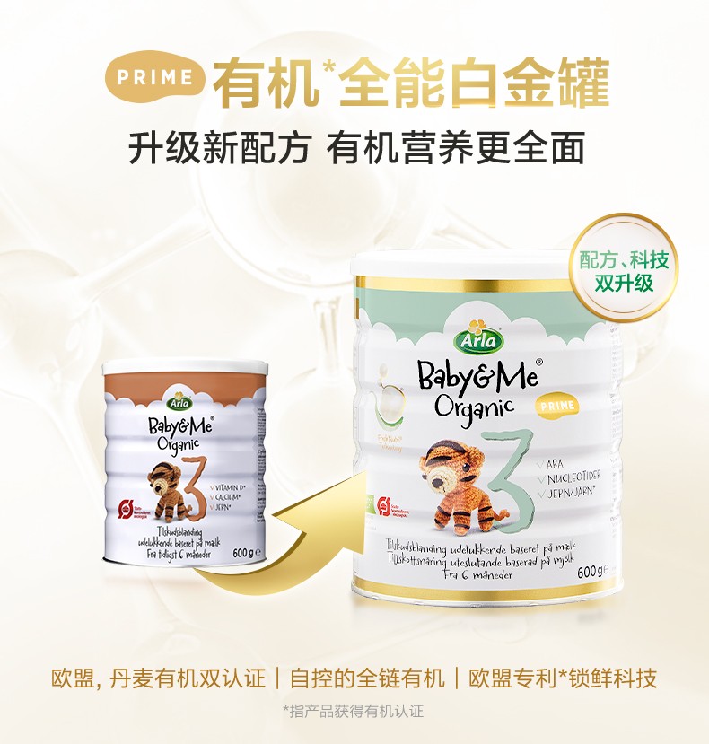 【保税仓】丹麦 阿拉(ARLA)有机婴幼儿配方奶粉白金3段 600g 1岁以上