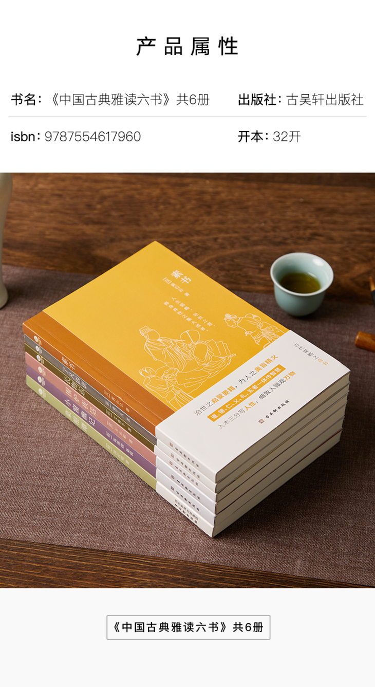 《中国古典智慧雅读六书》共6册,跟着古人,把柴米油盐的平凡活得有趣、明朗、雅致~