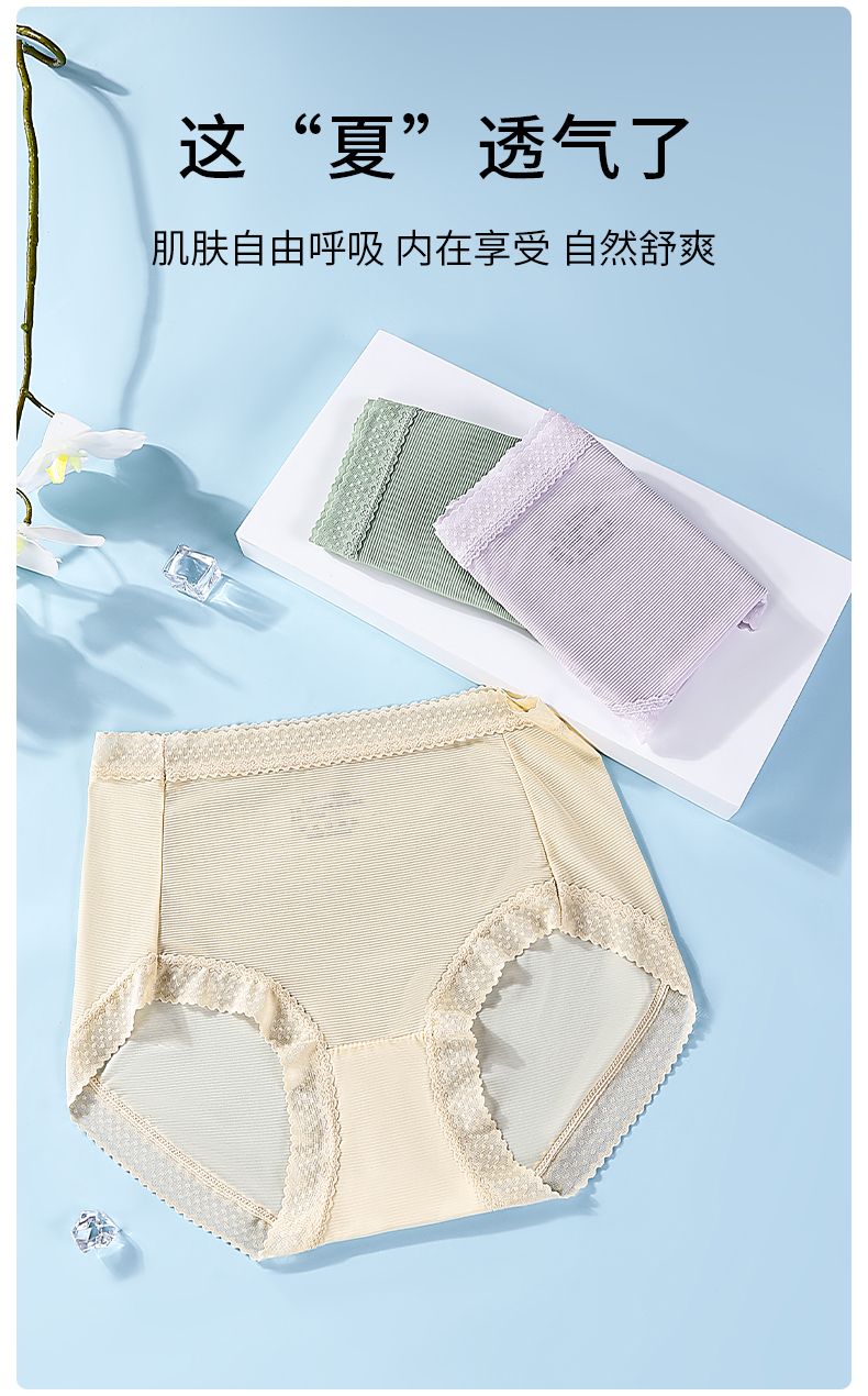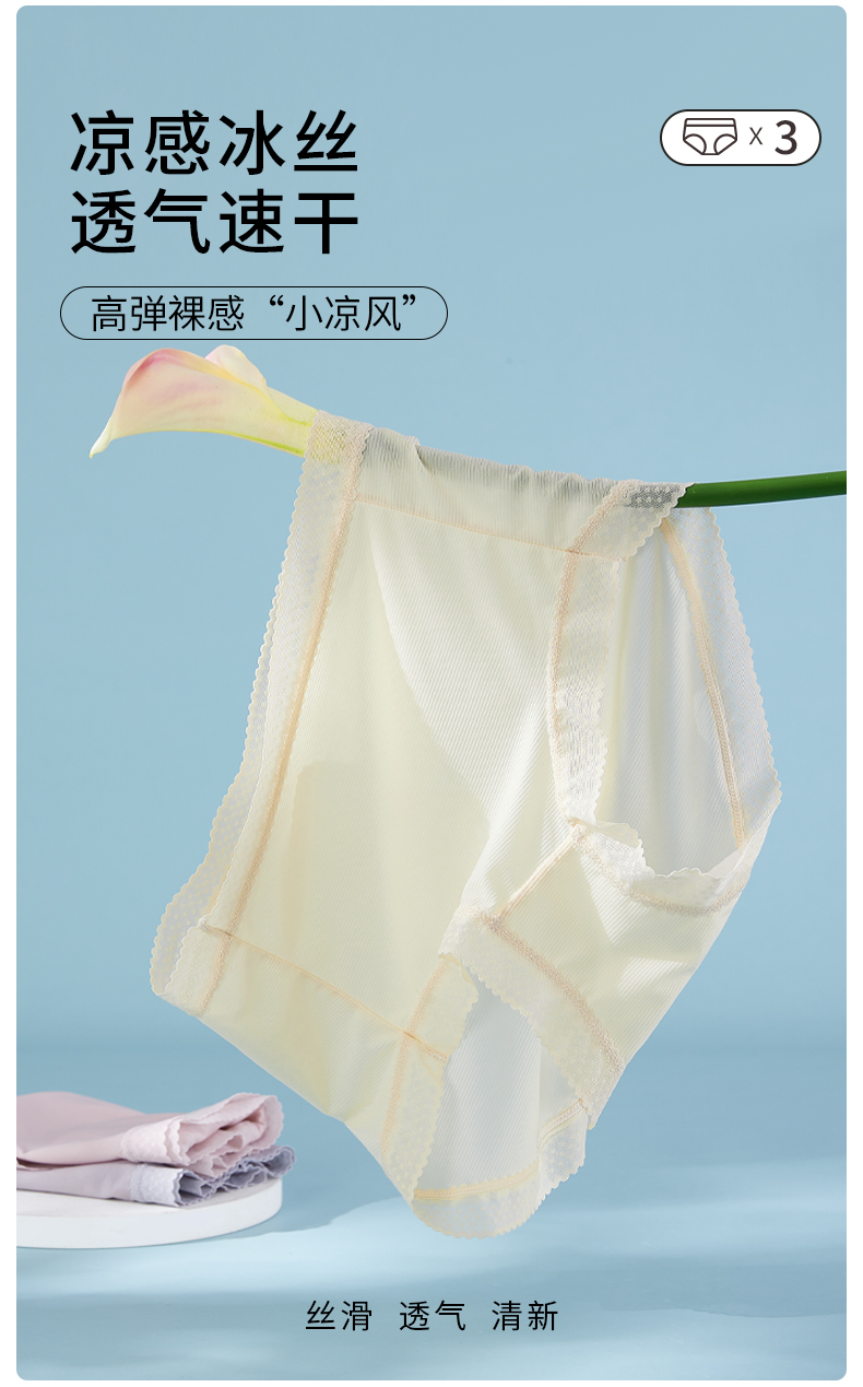 雅黛丽内裤女晾感冰丝透气中腰三角裤纯棉底裆亲肤舒适短裤头