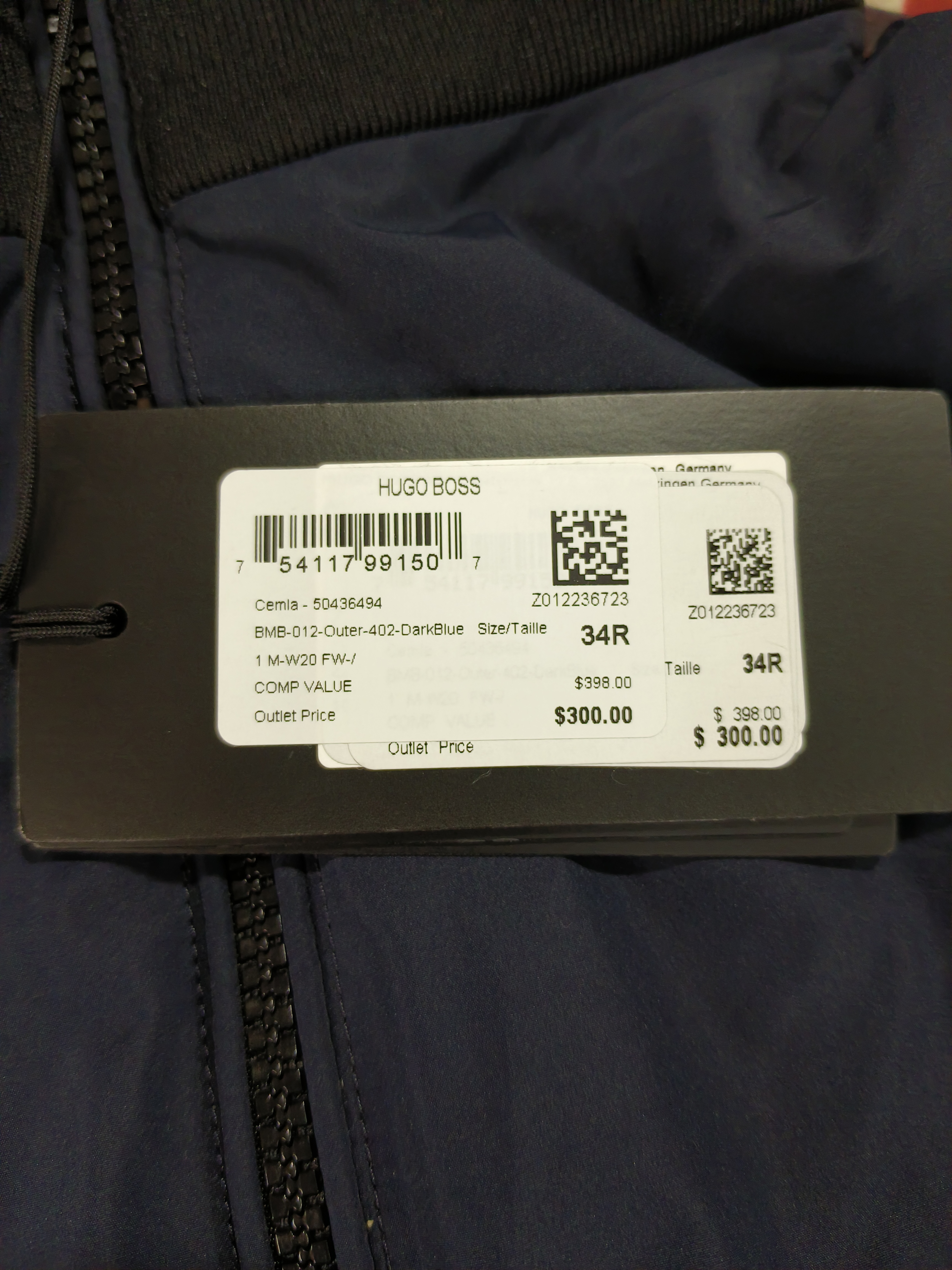 瑕疵HUGO BOSS/胡戈波士 男士黑标纯色可拆卸连帽商务休闲夹克外套