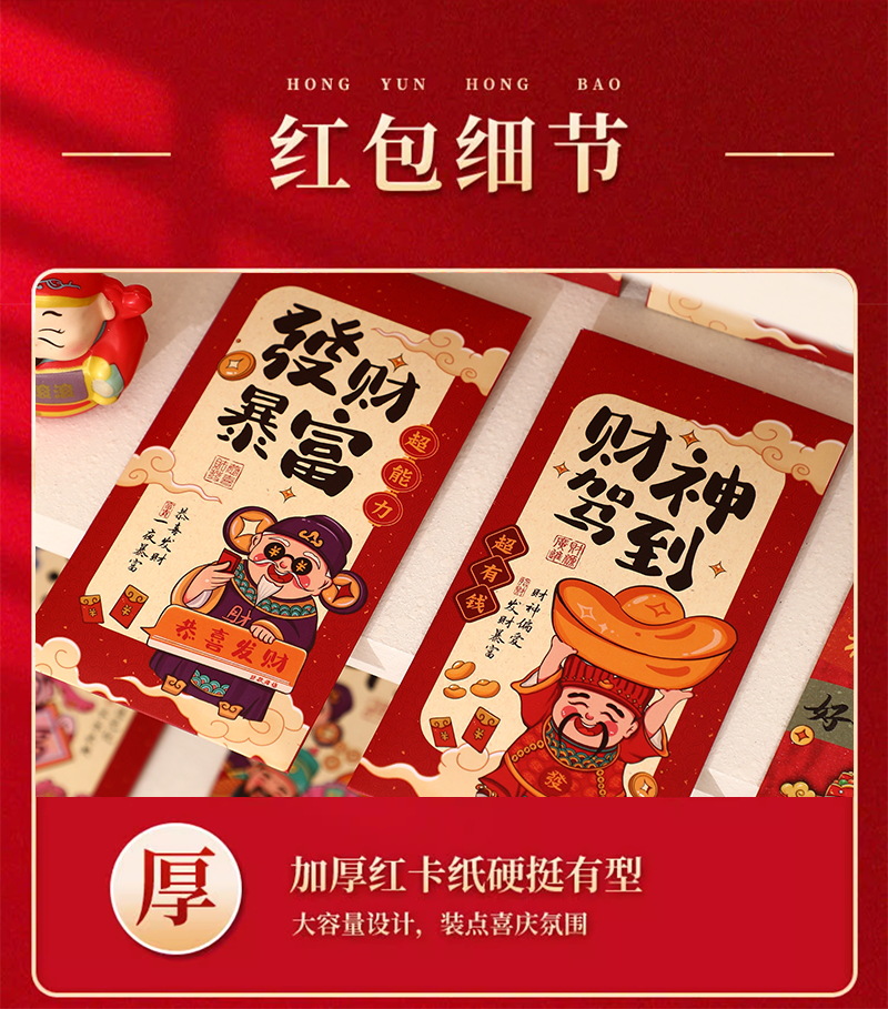 「买1送1!9.9到手2包」红包财运发财财神爷利是封硬质新年红包大吉大利红包袋改口费