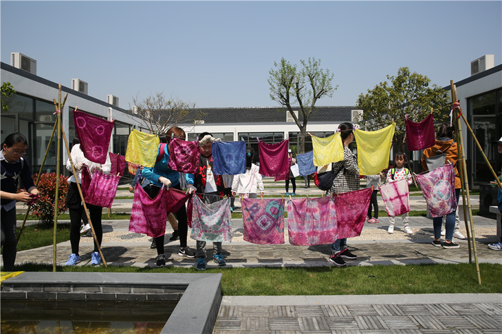 一帕丝巾,或巧手叠扎,浸染晾晒;或以卵石匀击,草木染熨,植物染料,天然芬香。