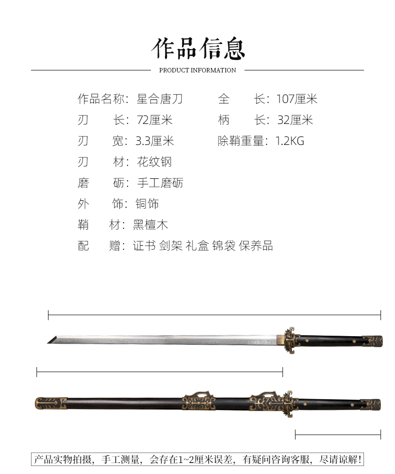 星合唐横刀 传统宝剑 汉唐宝剑 龙泉沈广隆宝剑 花纹钢 未开刃