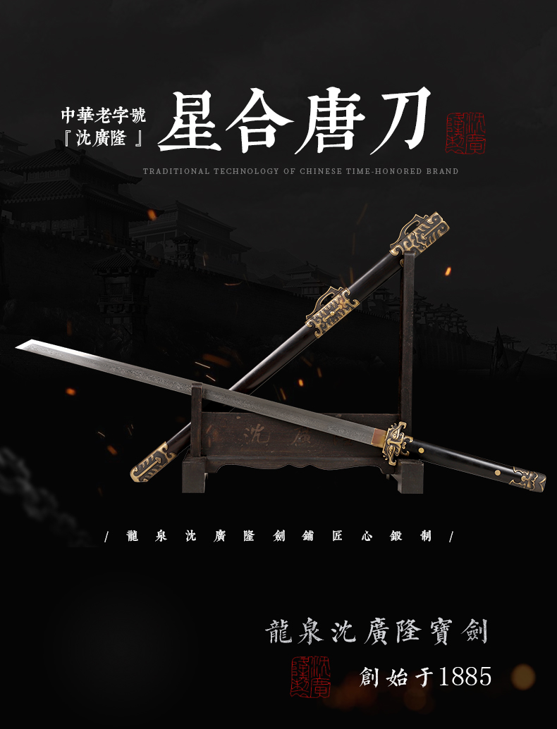 - 龙泉沈广隆剑舖创始于1885年(清光绪)位于浙江省龙泉市,是当地唯一一家“子承父业”一脉相承的中华老字号宝剑生产企业,是国家级非物质文化遗产龙泉宝剑项目保护单位,并以“天下第一剑”闻名于海内外....