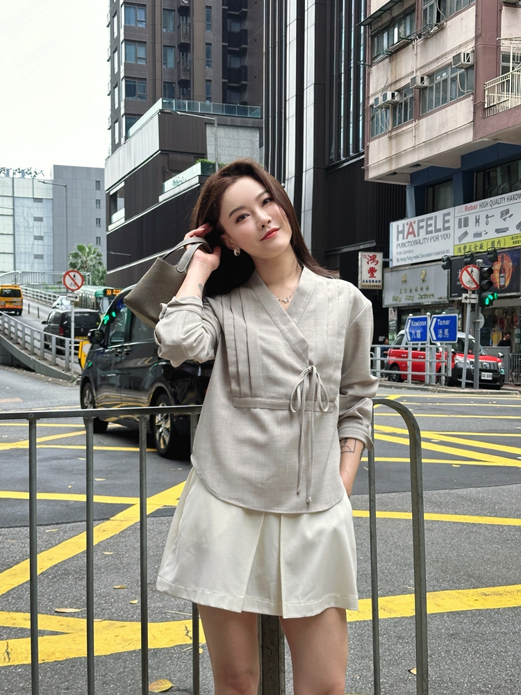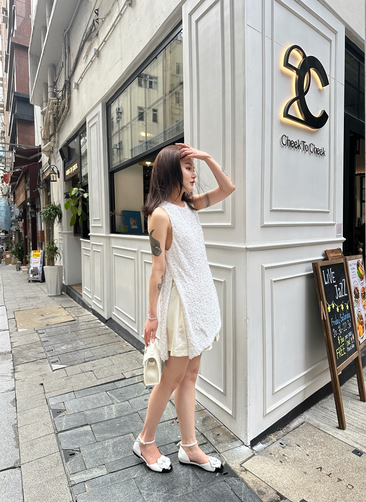 DUO智仙生黑标 中轴剪裁简单清新棉质白色短裙