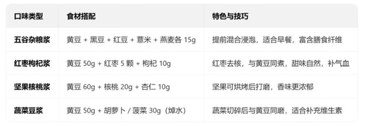 浓稠型:黄豆与水比例 1:10(如 80g 豆 + 800ml 水);
