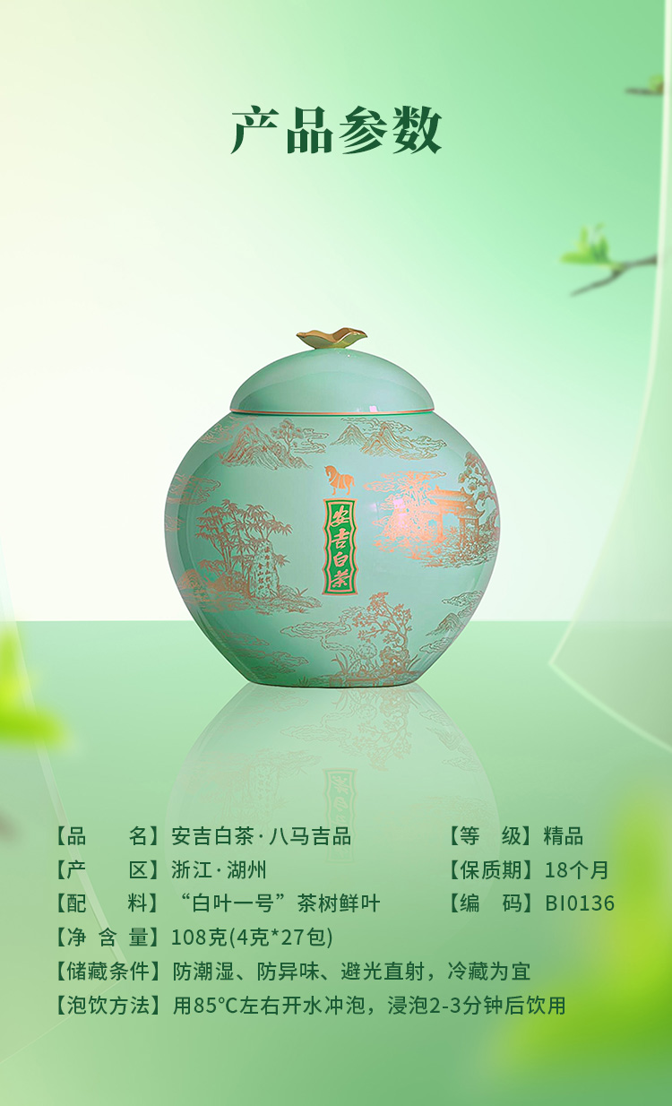 【2026年春茶】八马茶业 | 吉品·安吉白茶绿茶茶叶108g(无试茶)