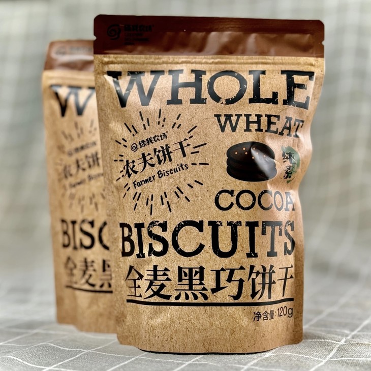 配料:石磨小麦粉、葵花籽油、蔗糖、石磨全麦粉、可可粉、食用盐、碳酸氢钠