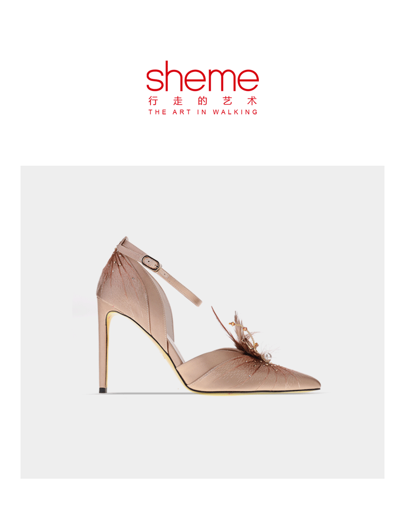 sheme原创设计羽翼鎏光系列刺绣水晶羽毛点缀中空高跟女士单鞋可定制
