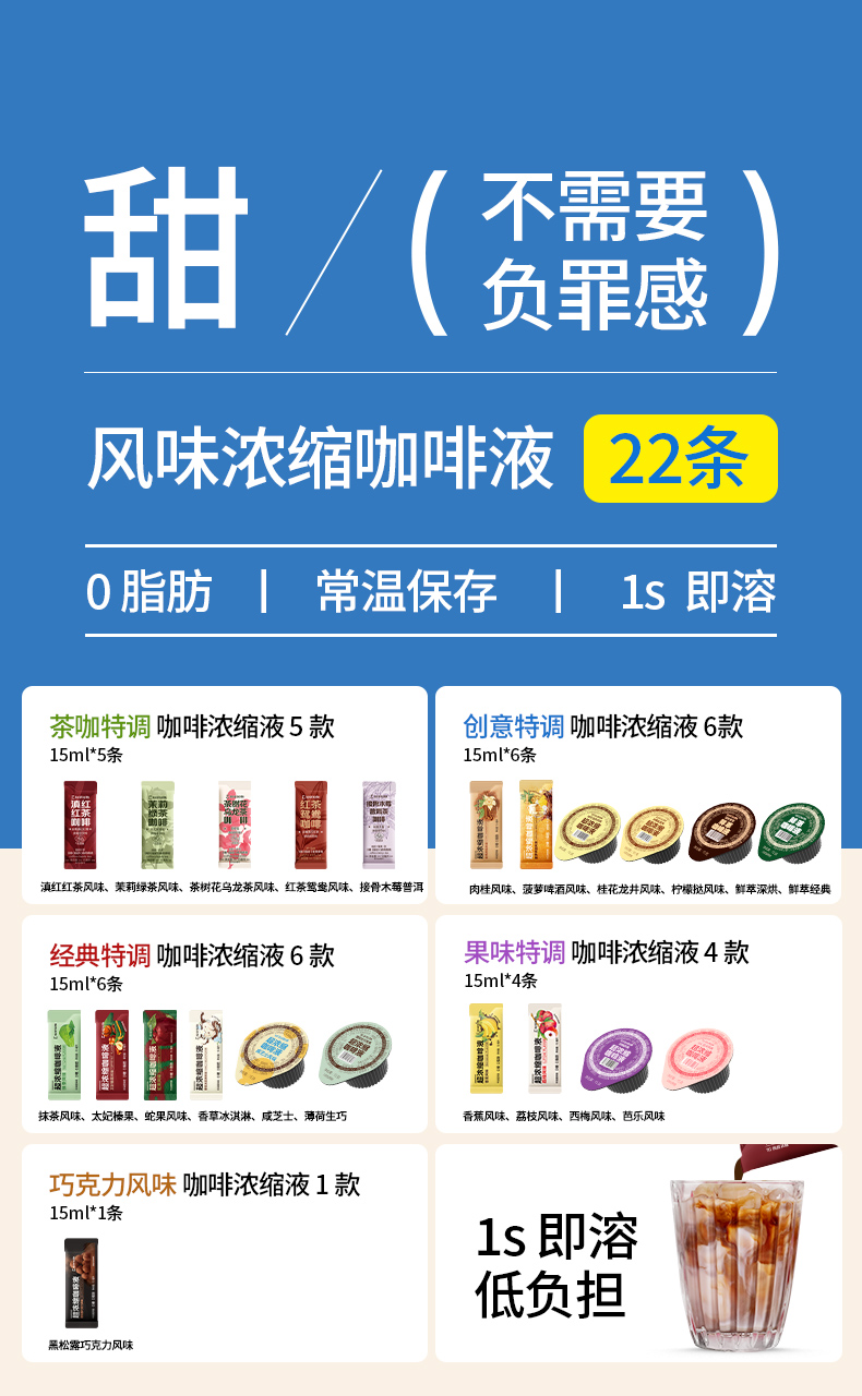 【再升级】知乎知物风味浓缩咖啡液多种口味0脂肪美式拿铁速溶22种口味共22杯