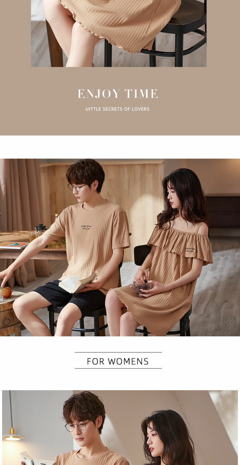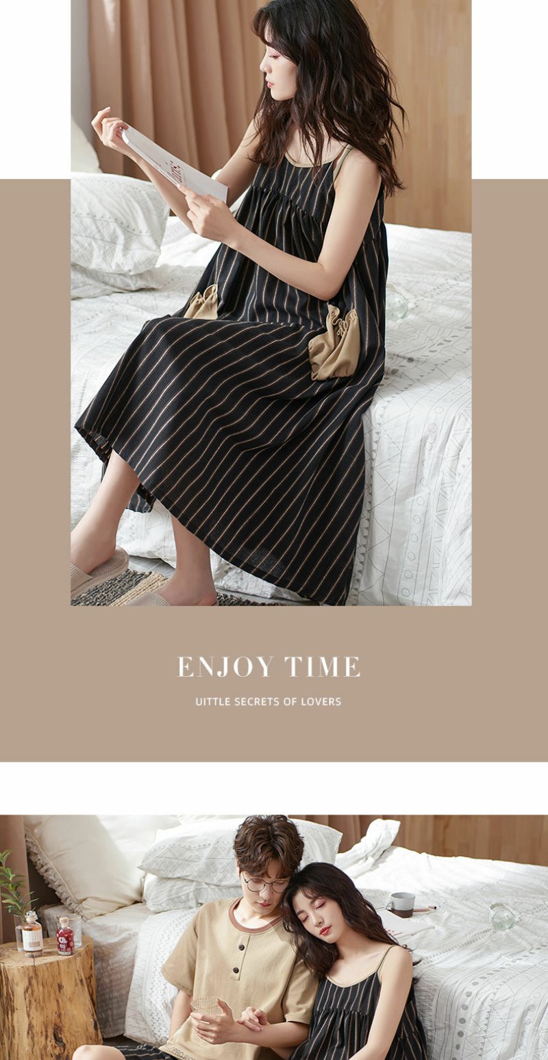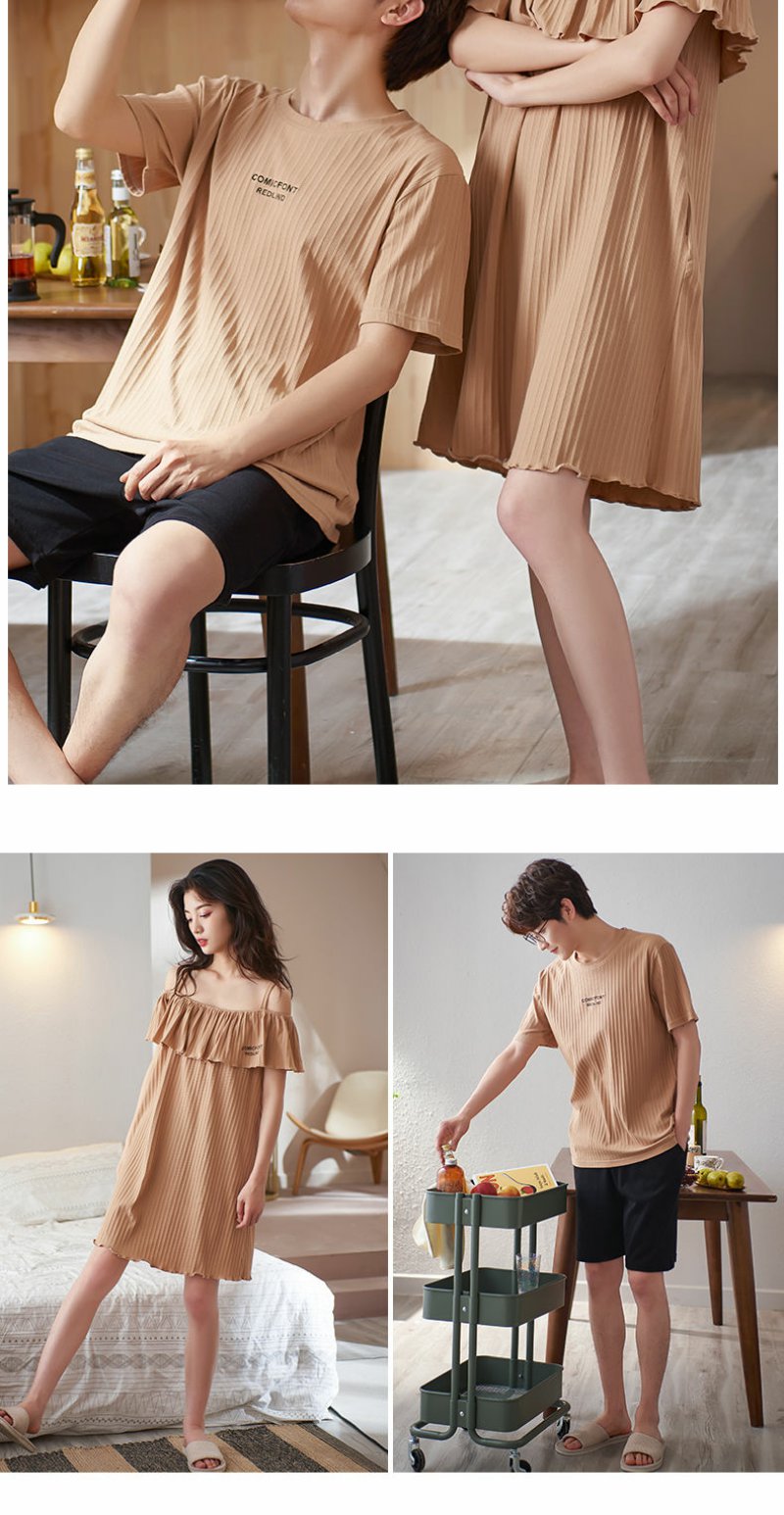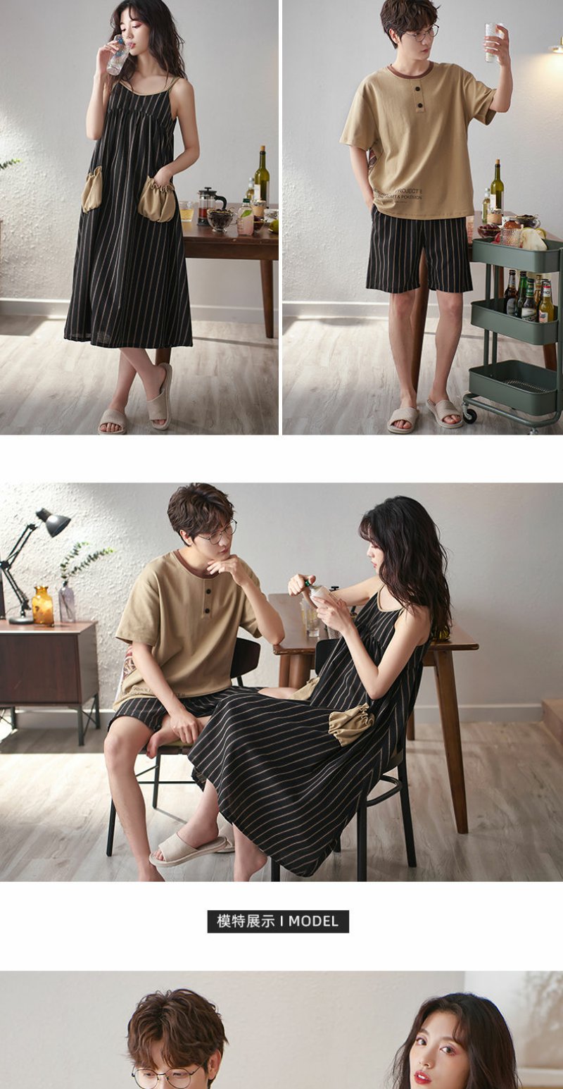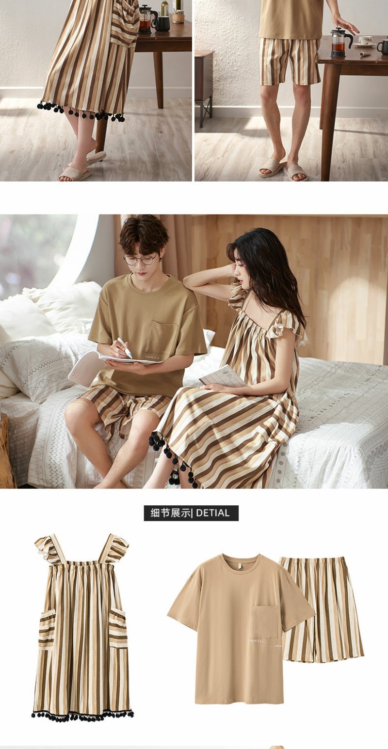 多拉美情侣睡衣夏季纯棉短袖宽松舒适男女士薄款吊带裙家居服套装