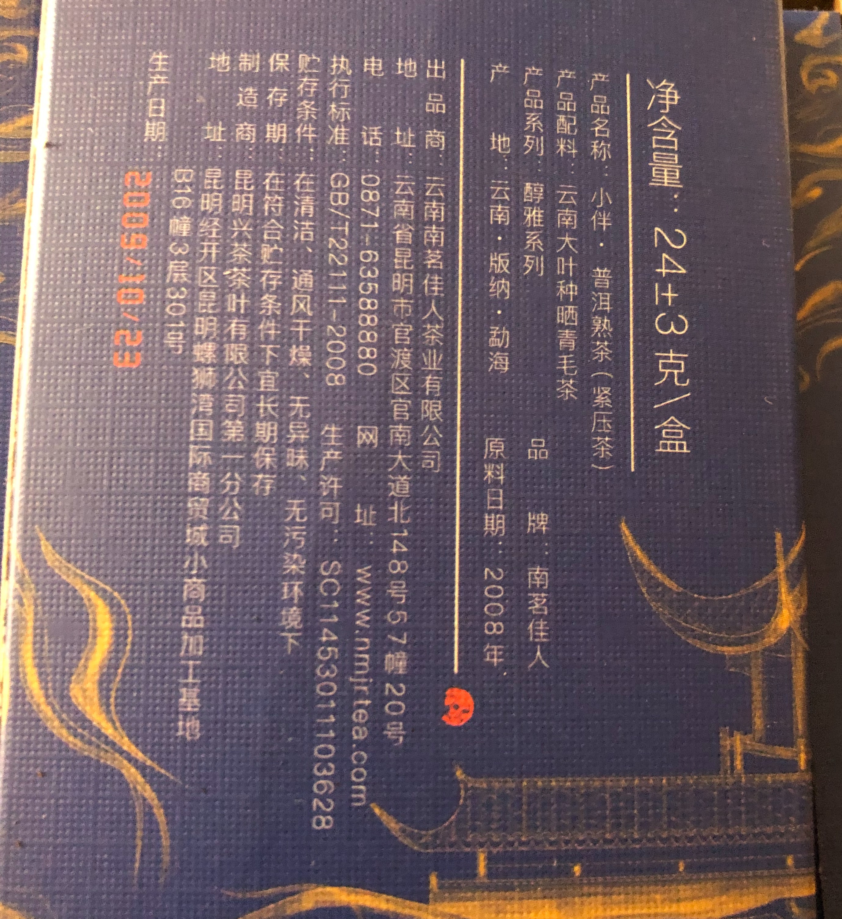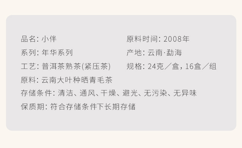 【买5送1】2008年《小伴》普洱熟茶 24克/块