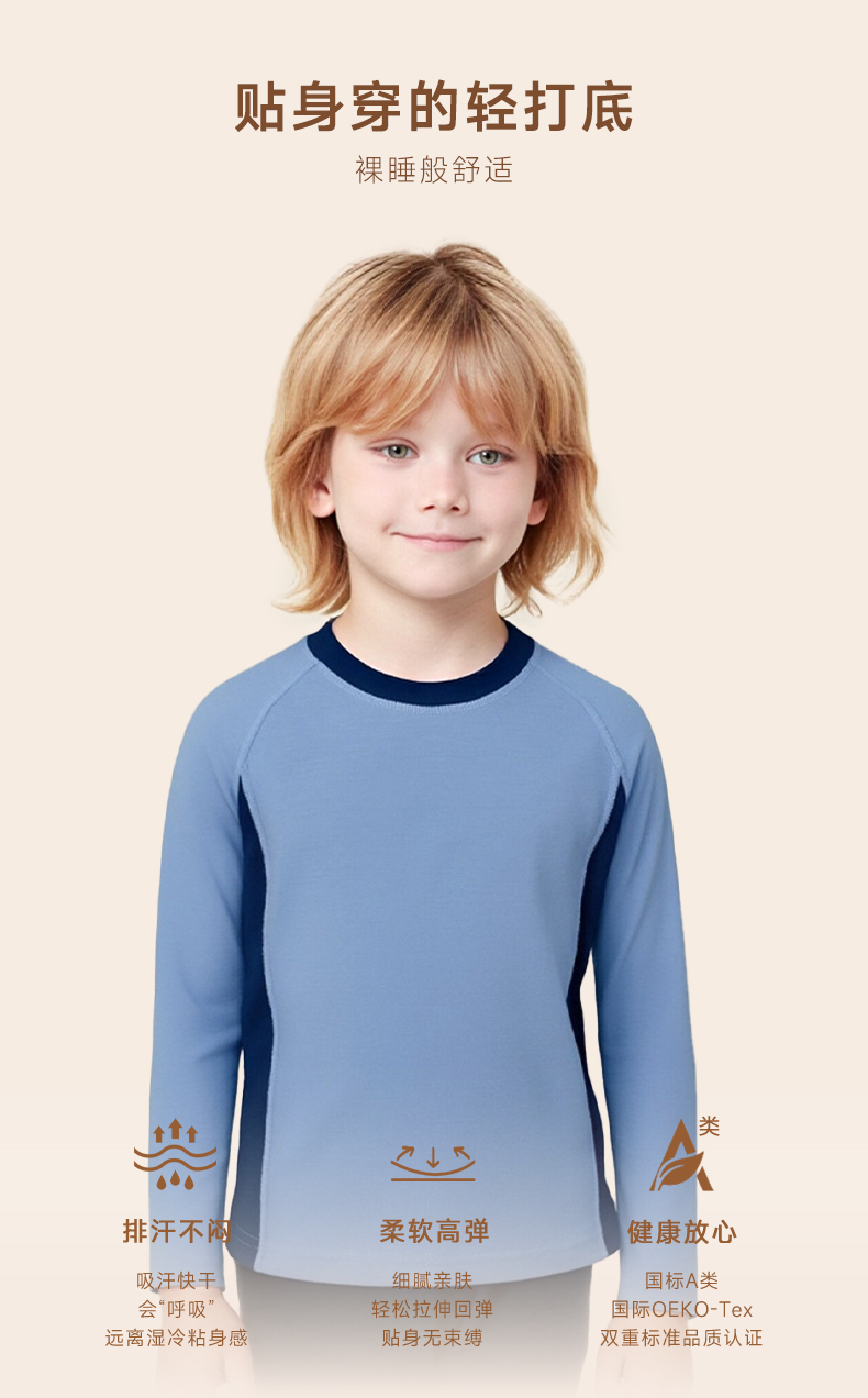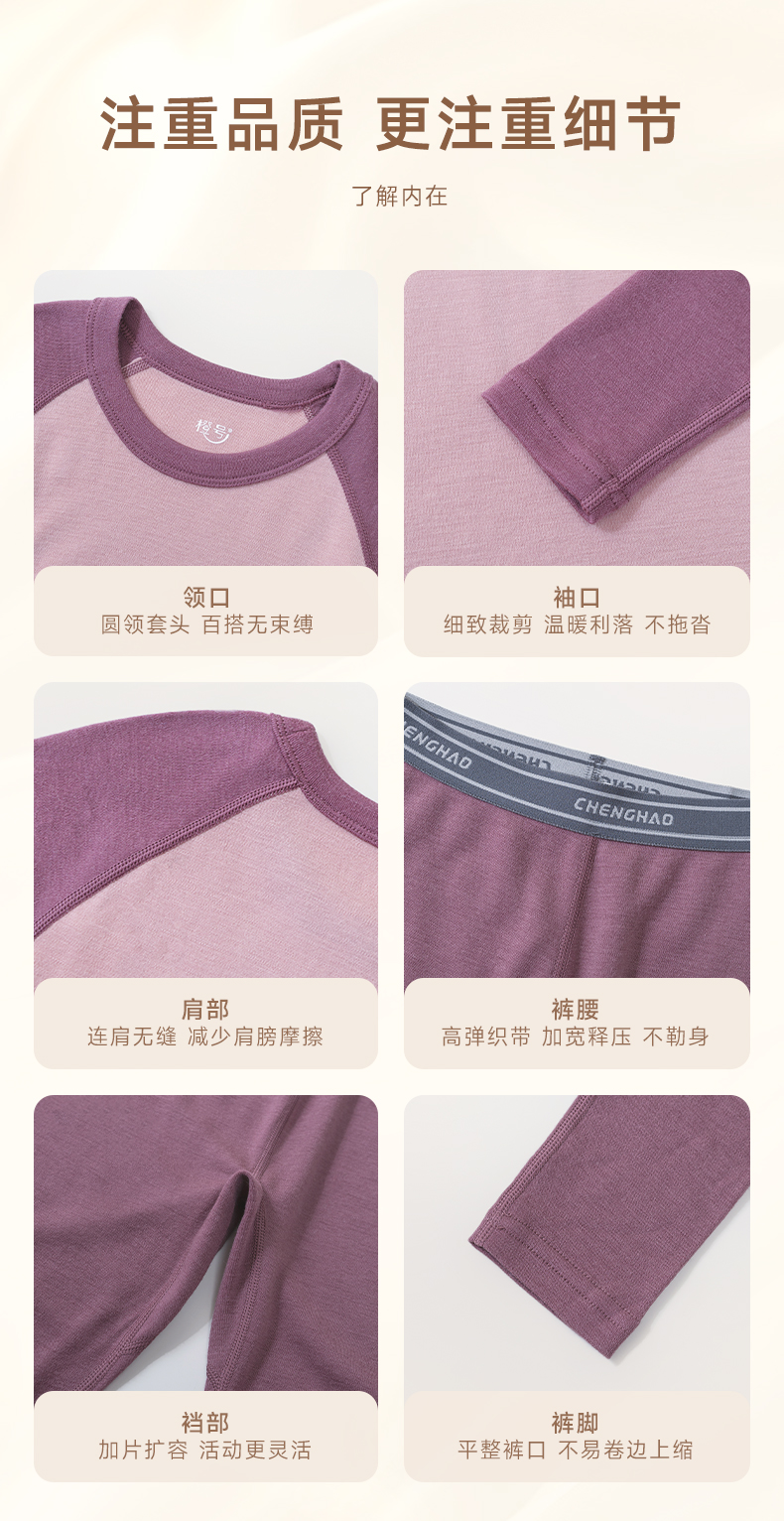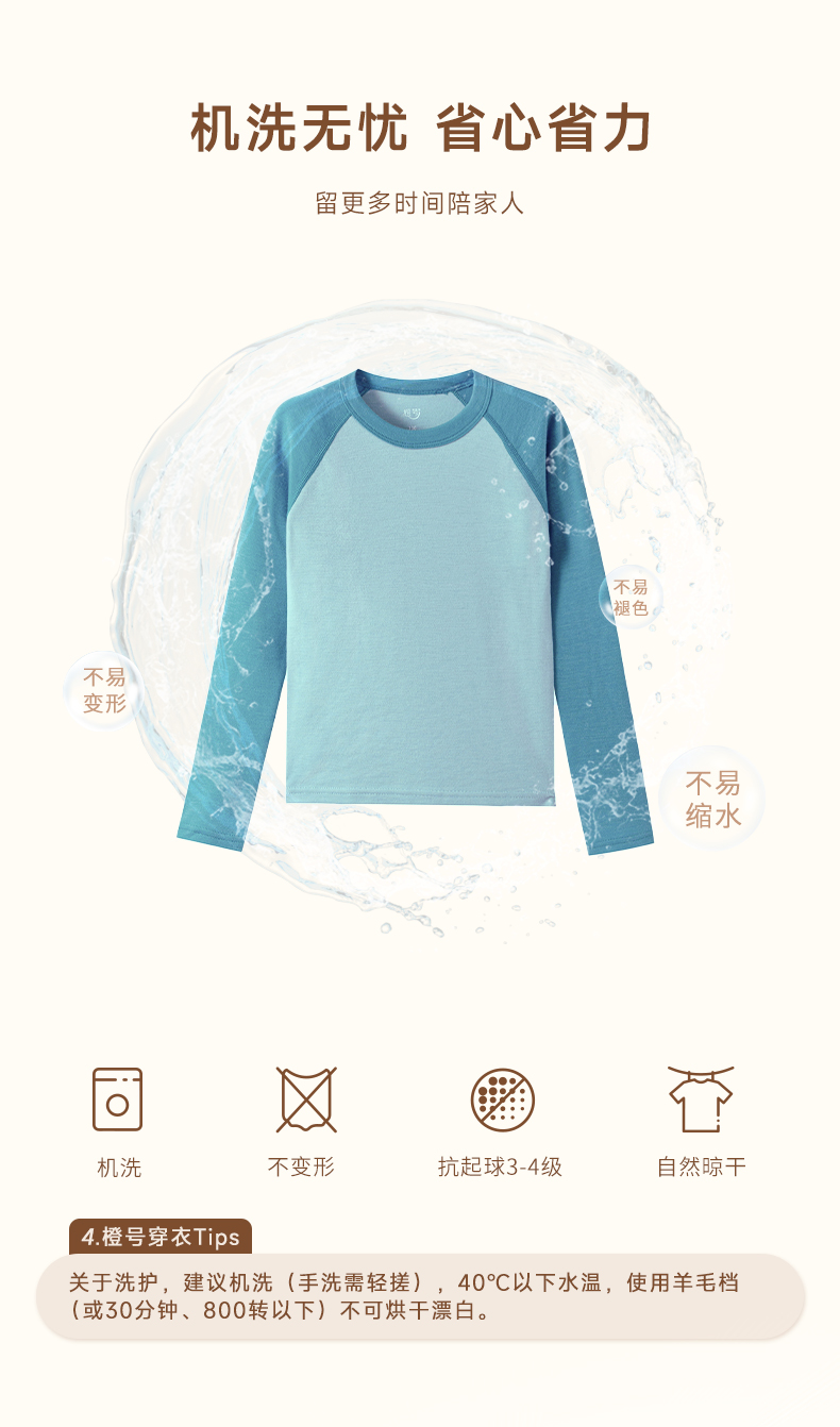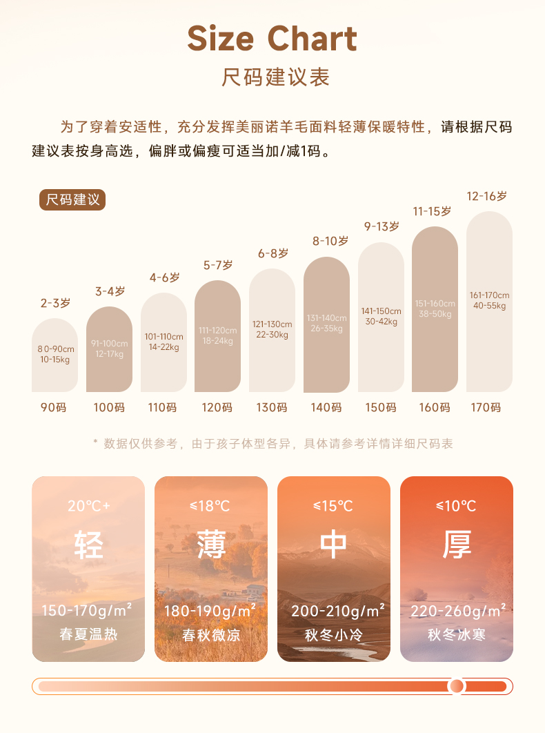 低于双12【90-170码】橙号100%美丽诺羊毛儿童拼色加厚款秋衣秋裤2025年 克重230g/㎡