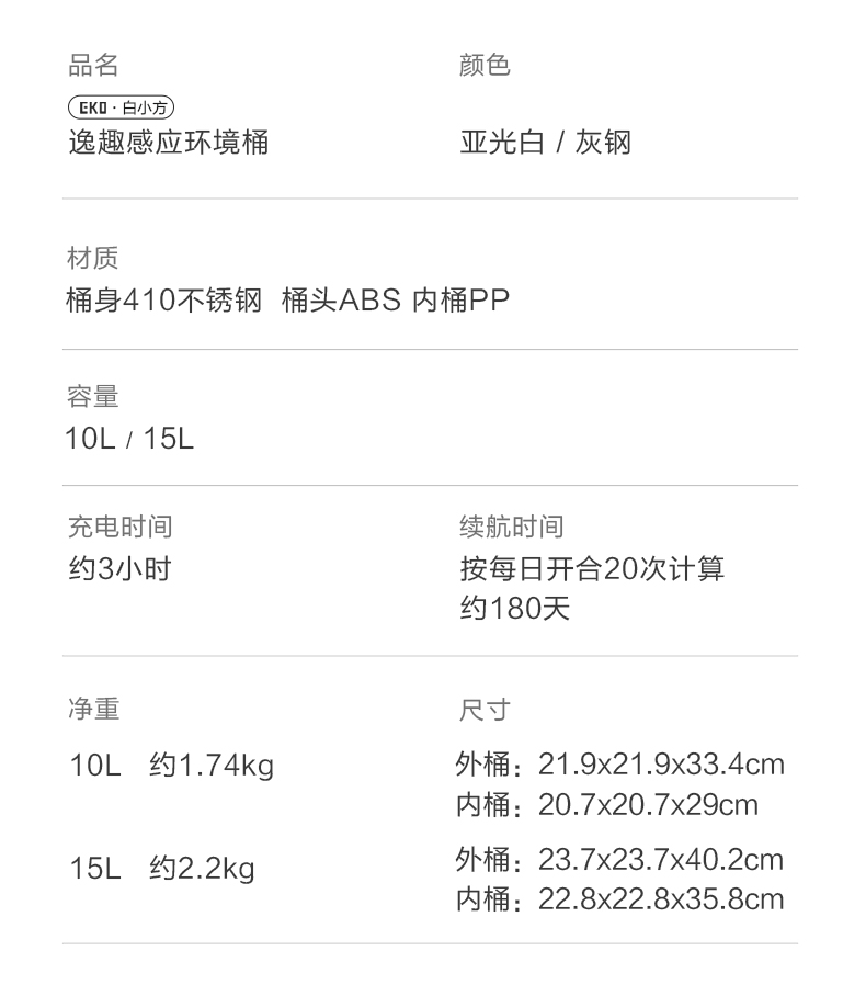 【6F】多样屋逸趣10升/15升感应环境桶(内置锂电池)智能垃圾桶