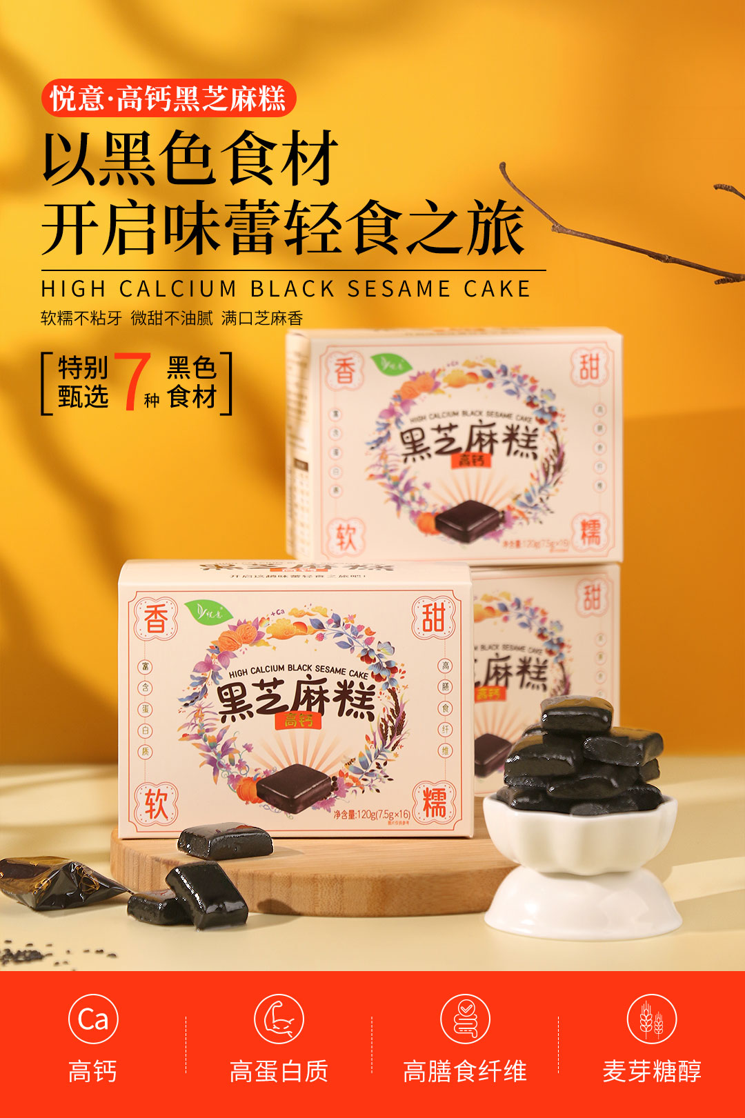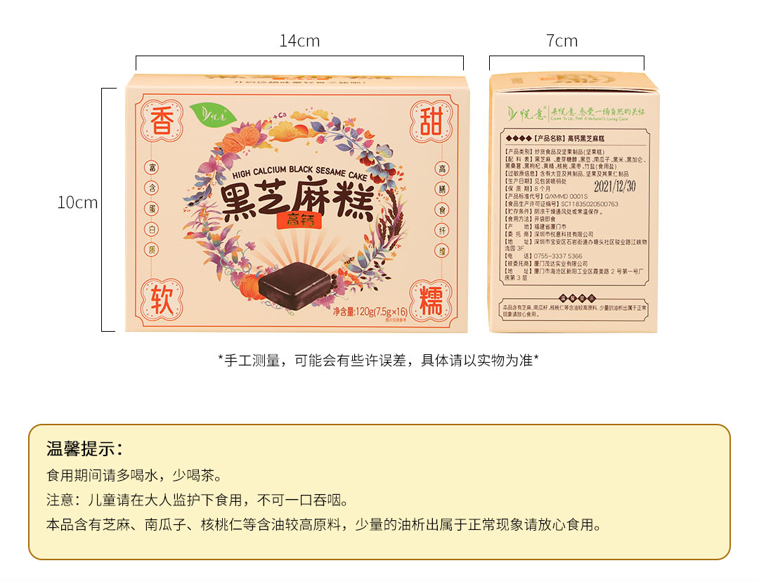 悦意高钙黑芝麻糕B120g*2【产地直发】@szyy