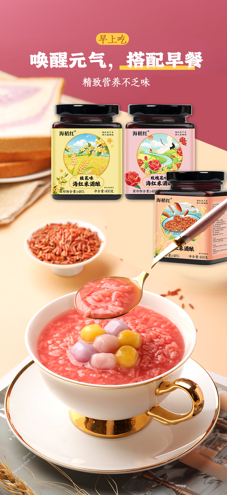 优选|海红米酒酿 精选盐碱海红米 双酒曲发酵 软糯滑口 酸甜适宜 400g*2瓶