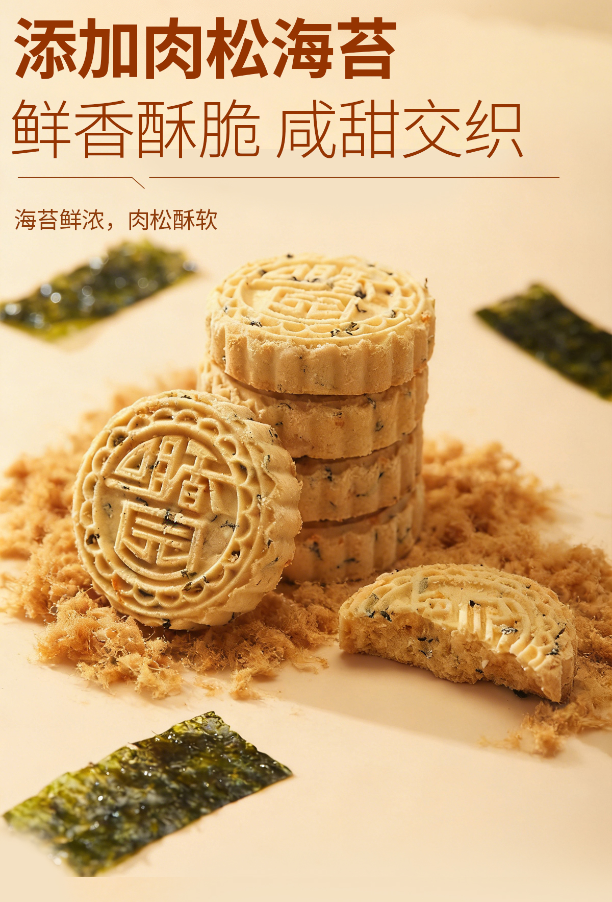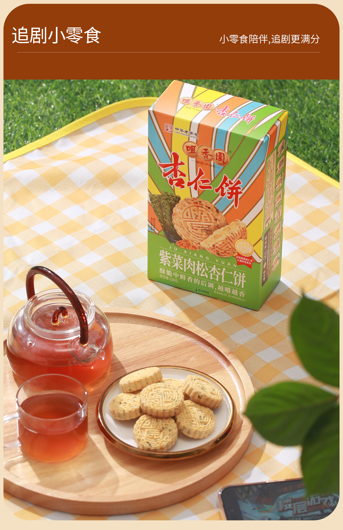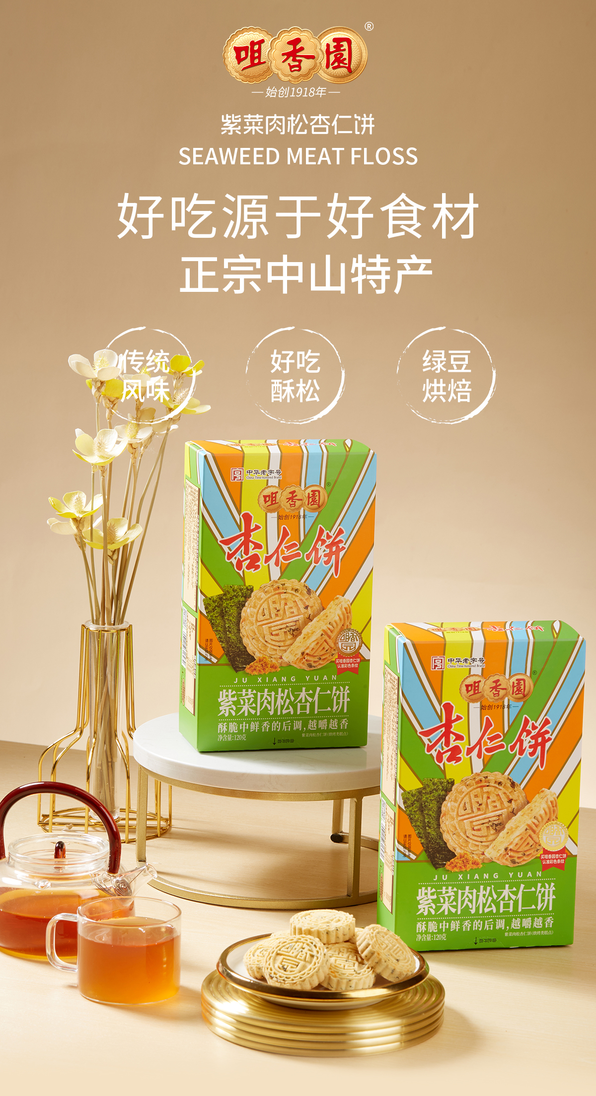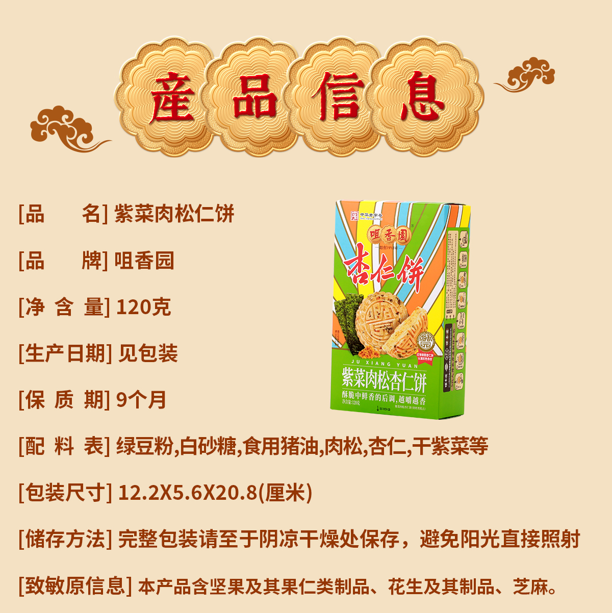 【咀香园紫菜肉松杏仁饼120g】26年新款广东传统糕点中山杏仁饼创新口味手信礼独立包装