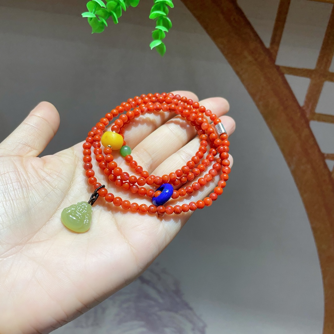 天然南红手链,尺寸约4.5mm,蜜蜡和田玉青金等配件