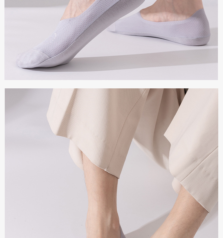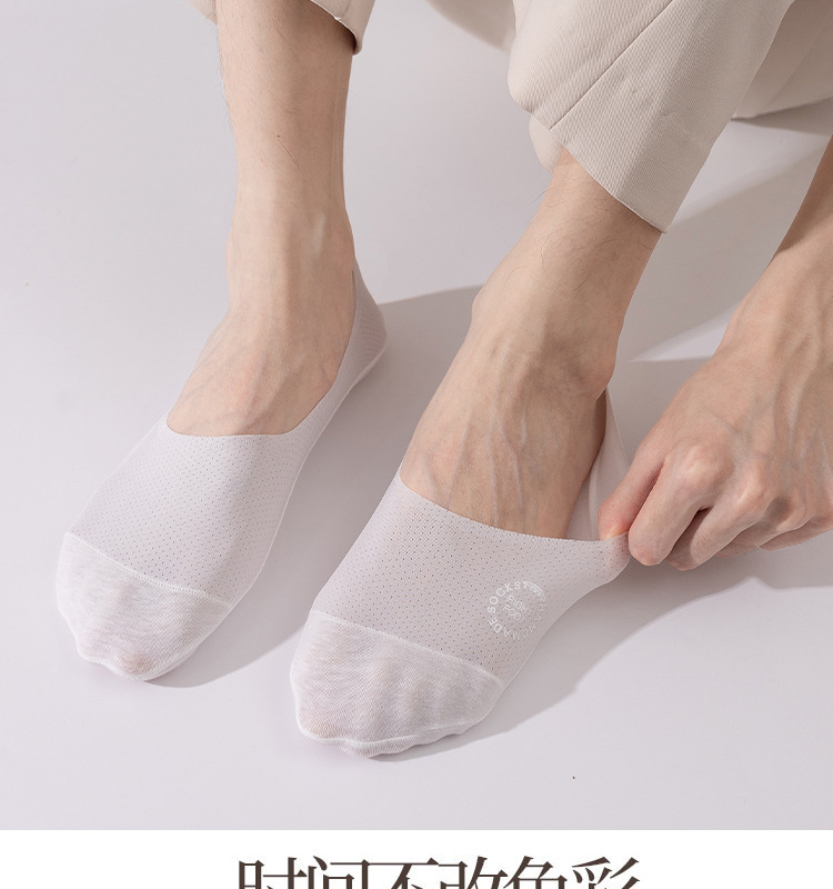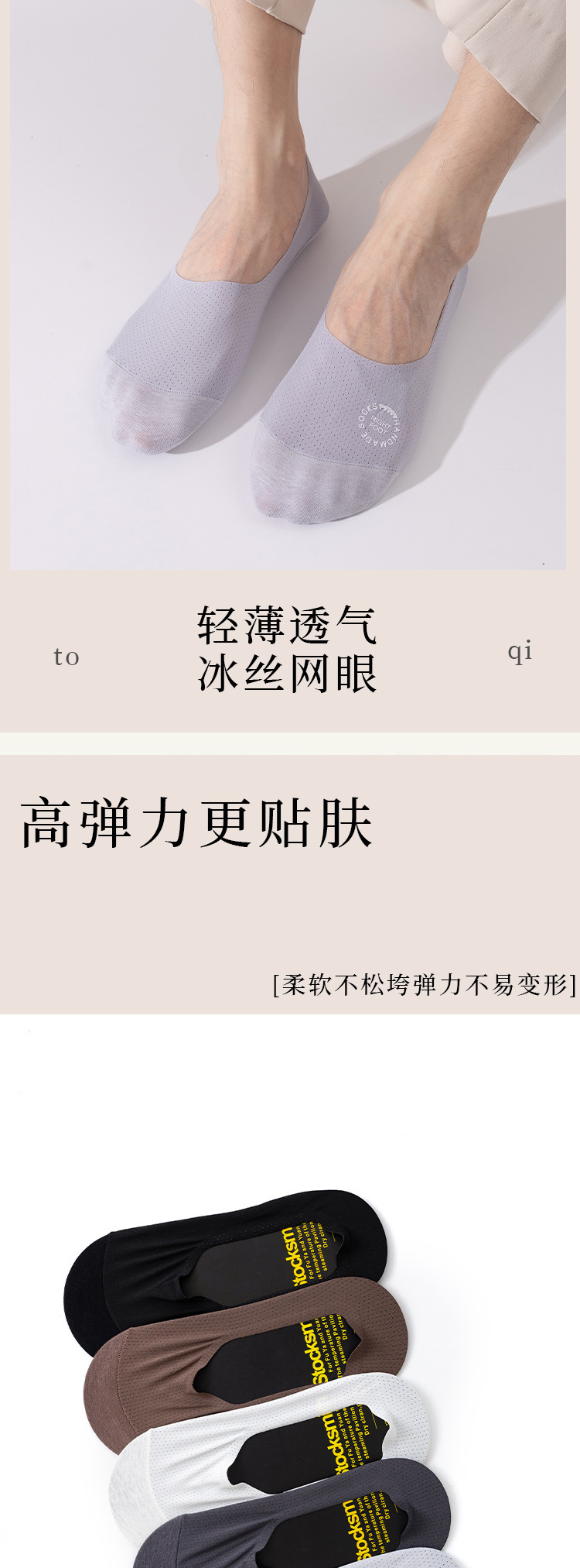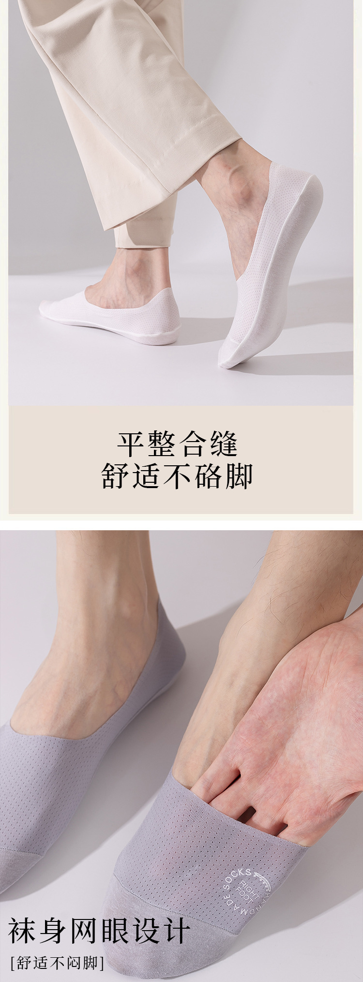 【舒适无束缚❗️男士冰丝隐形船袜】3D 立体剪裁,贴合脚型不紧绷;弹力袜口不勒脚,久穿不闷不压,自在舒适,超薄款网眼透气防臭硅胶防滑隐形不掉跟短袜L