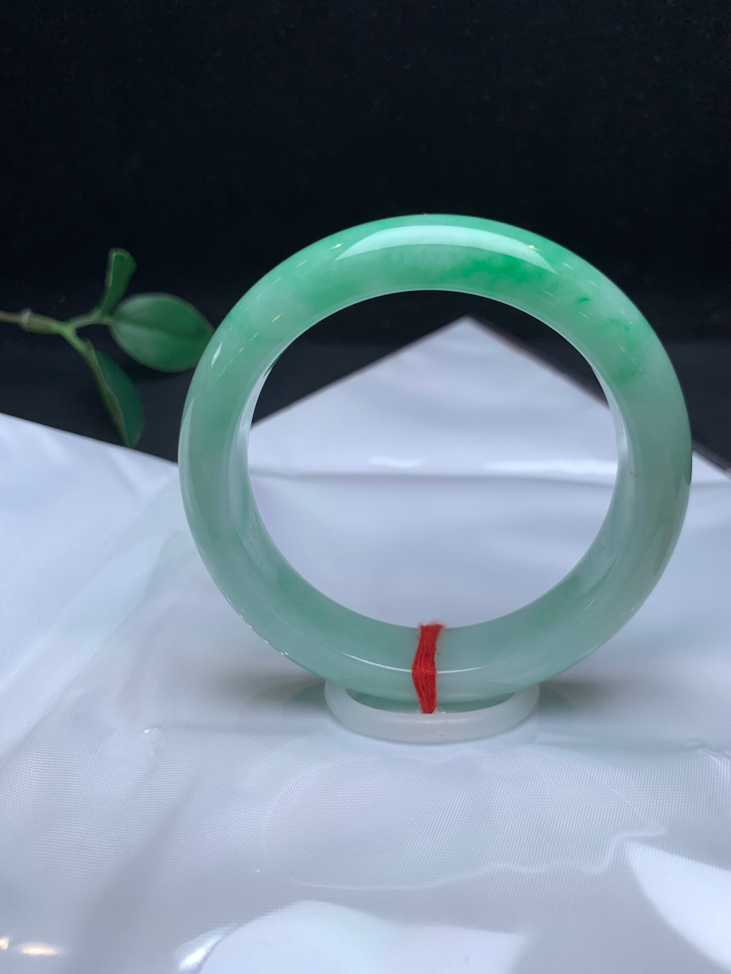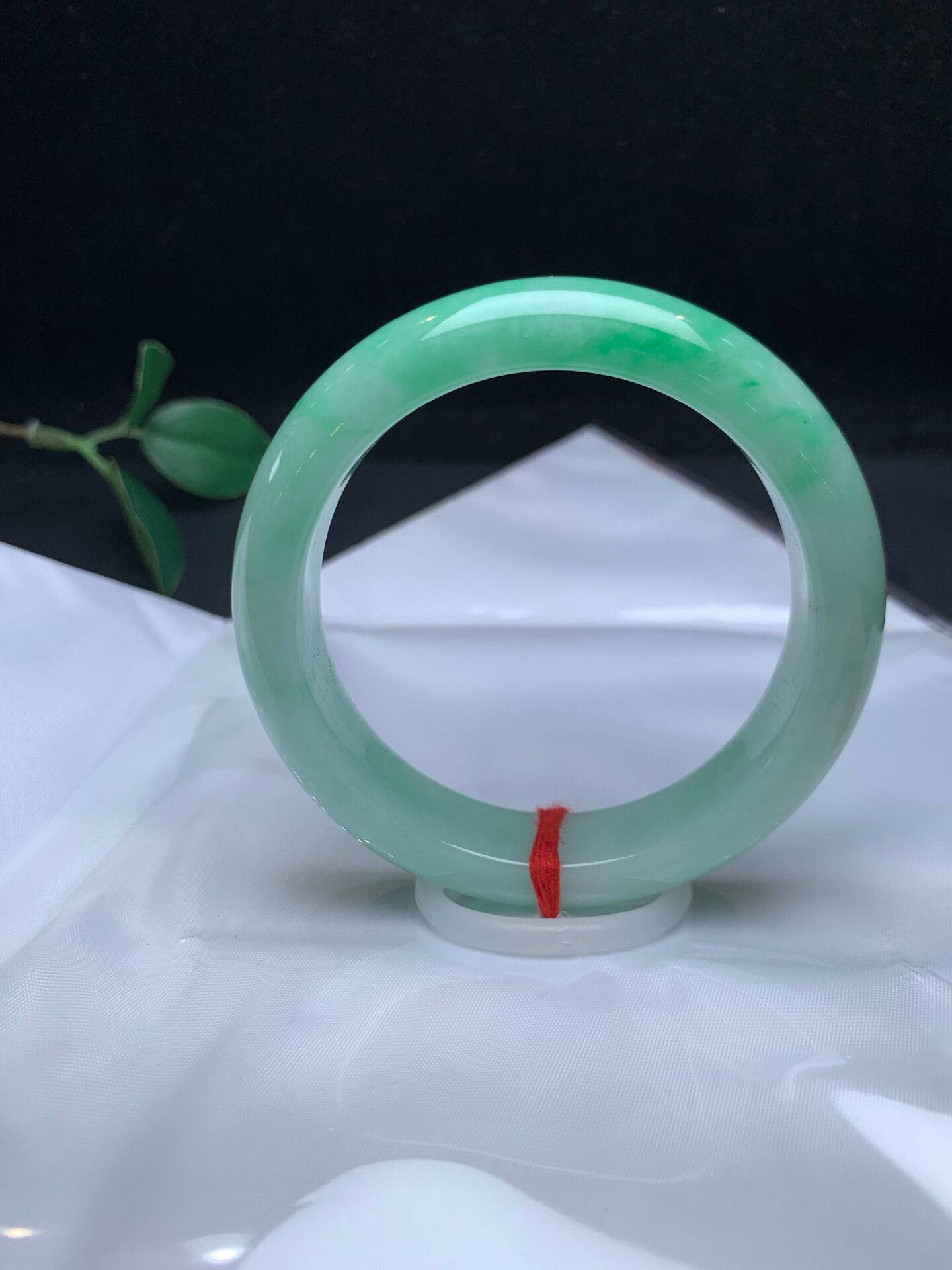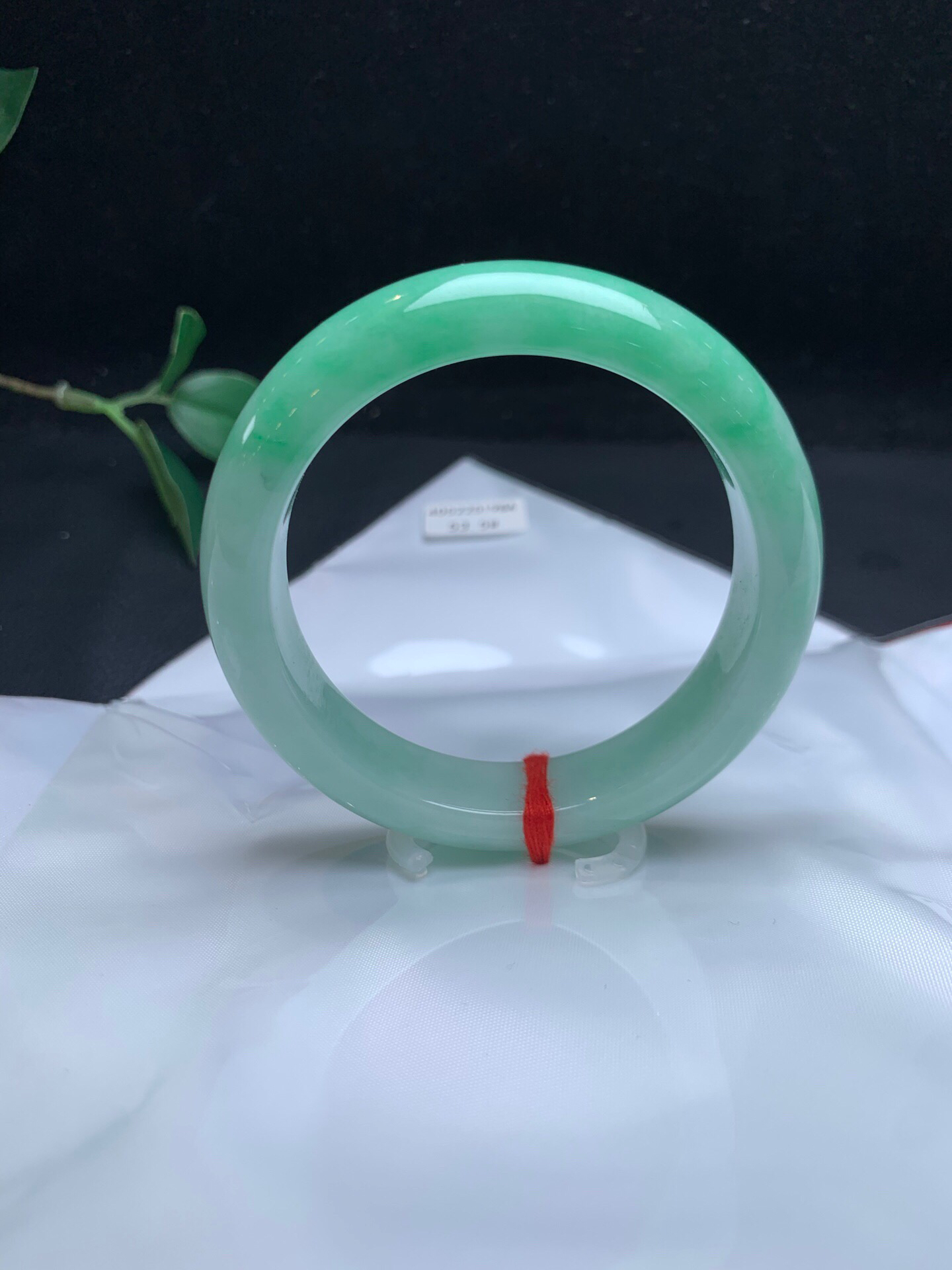 620451,53.5果绿底手镯,13-8.5mm,大半圈带绿底色,底妆干净,无裂纹,上手效果漂亮 ,超值价💰40800 #优石客珠宝#香玉荟萃
