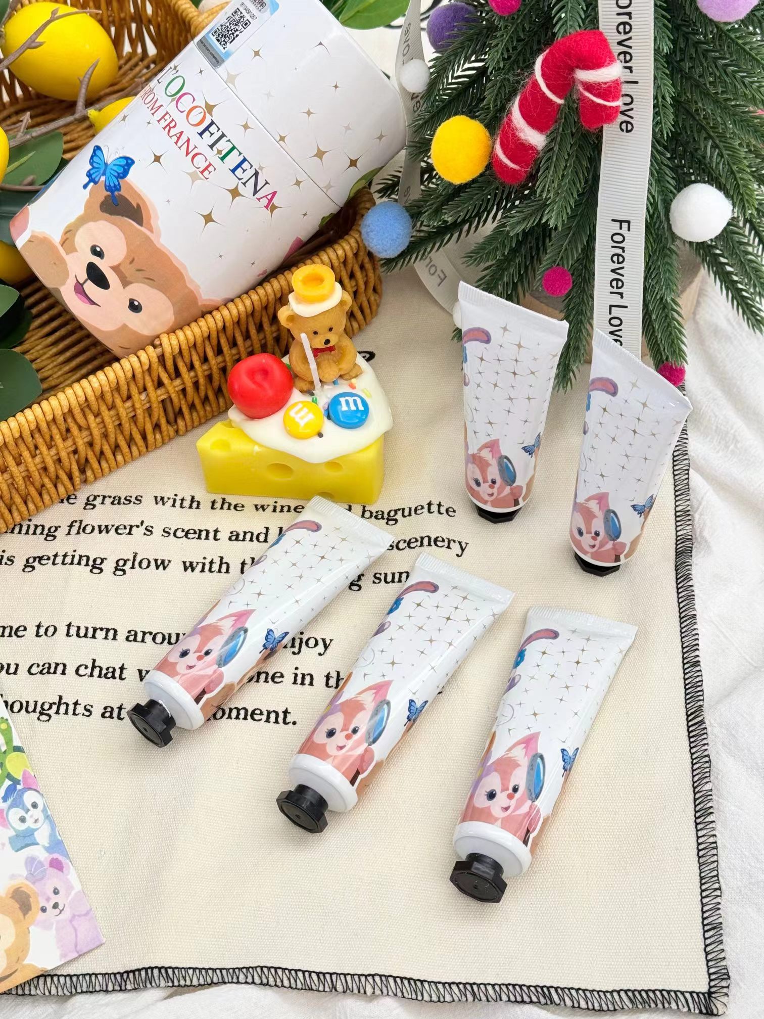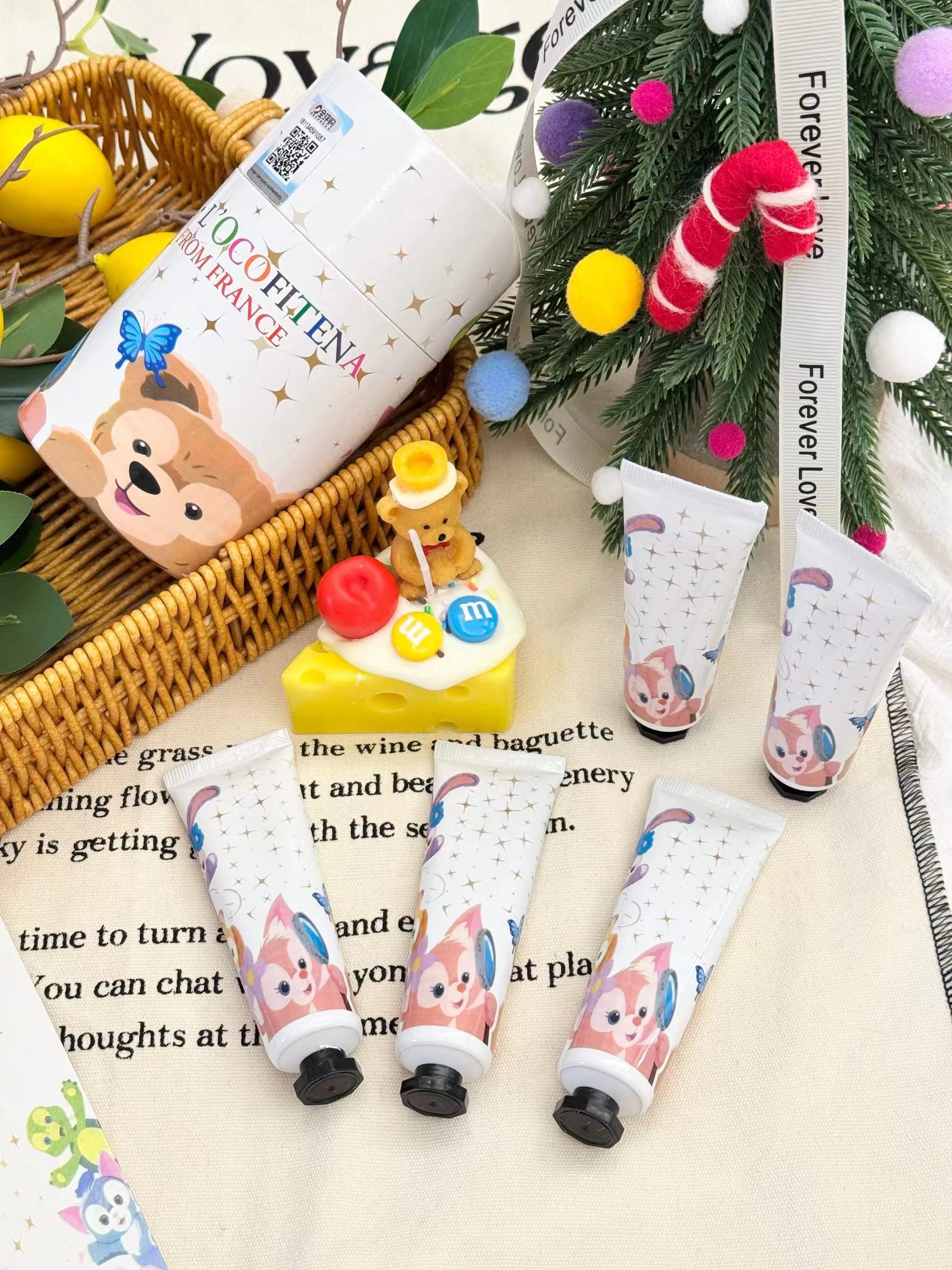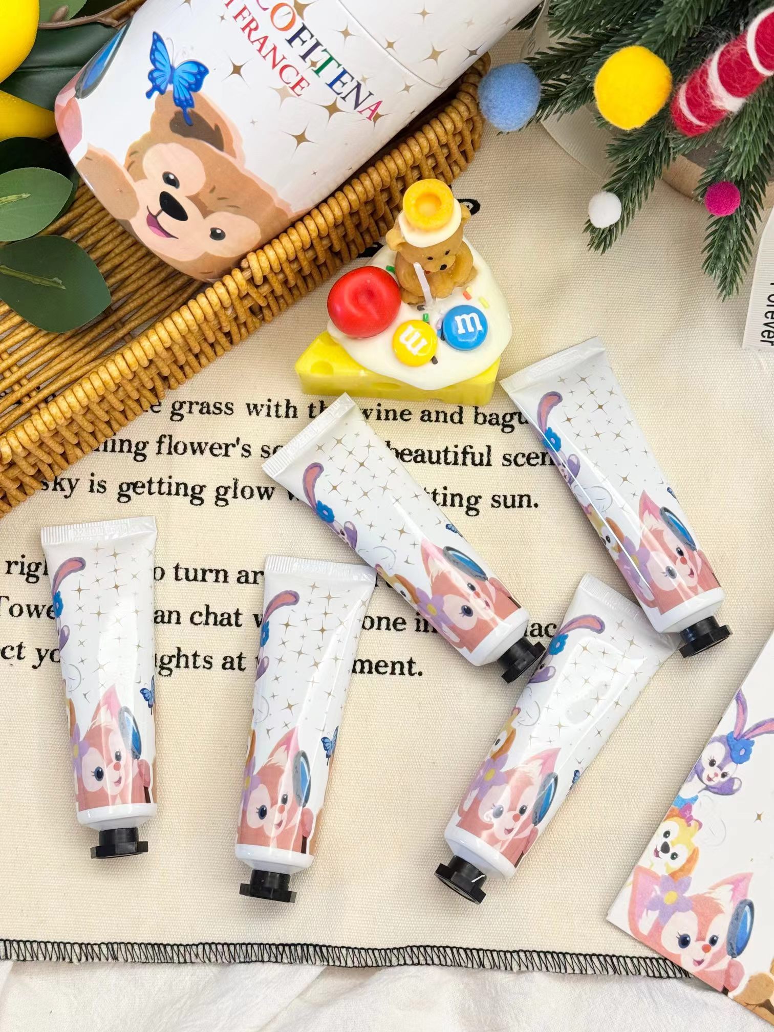 【两方联名护手霜五支装限定卡通礼盒】给各位的手来场spa吧!一盒五支装!关键光看包装就炒鸡喜欢!任性点!每天换一只涂都不心疼!入秋反正都是要用护手霜的,为啥不入这款呢,又可爱又好闻,关键还省了香水钱!不油腻不闷不粘,涂出水嫩少女手!留香时间长味道好闻又羔级,随身携带炒鸡方便!相信我别的都不如它好用!小手一牵,岁岁年年,天天抹一抹护手霜,让牵手的那一瞬间,更为心动!
