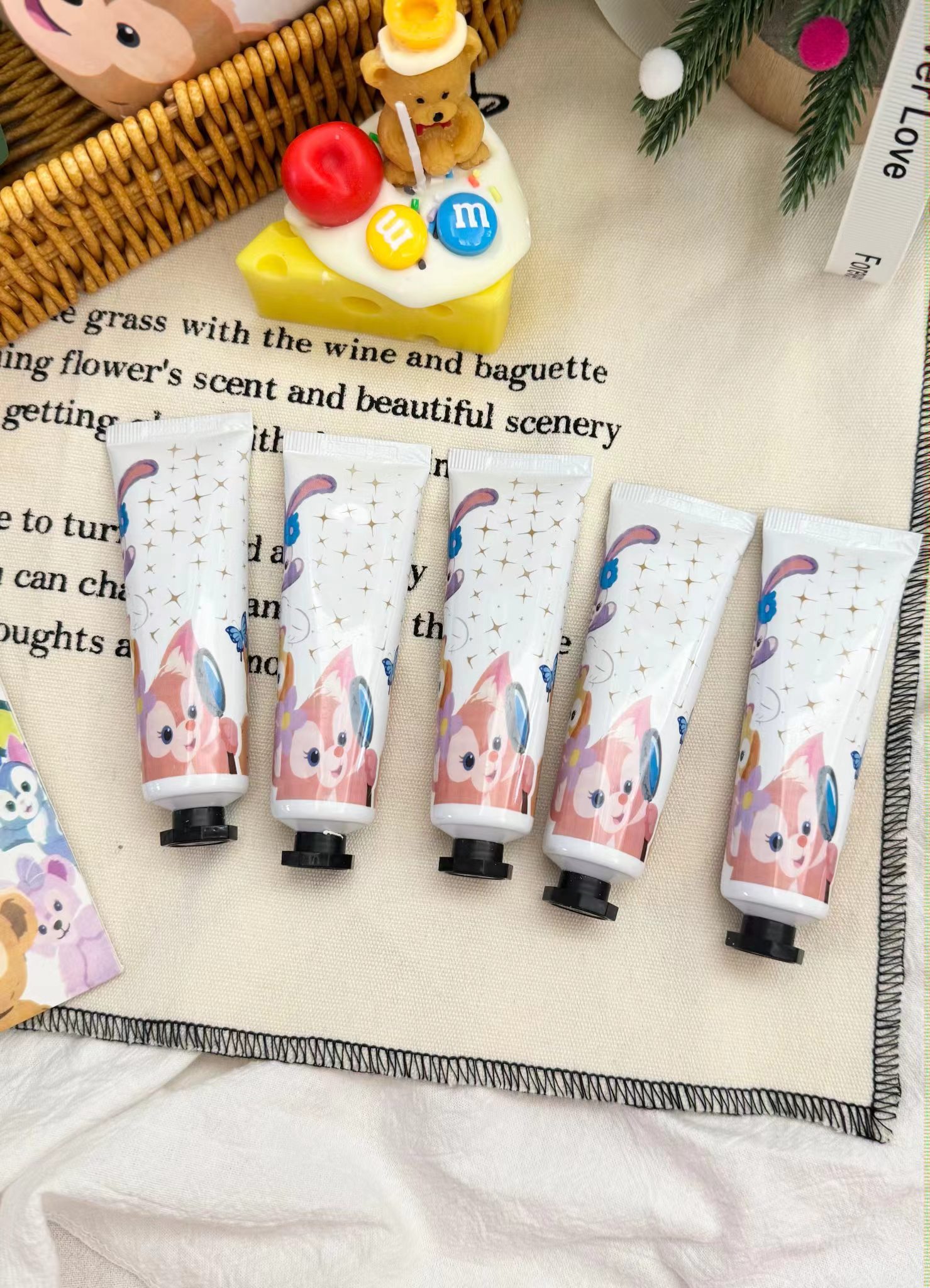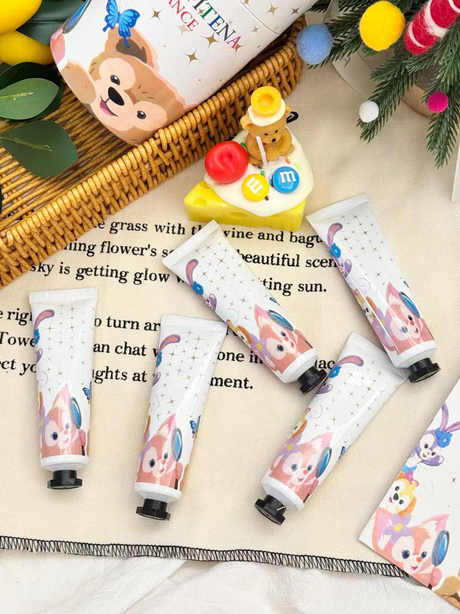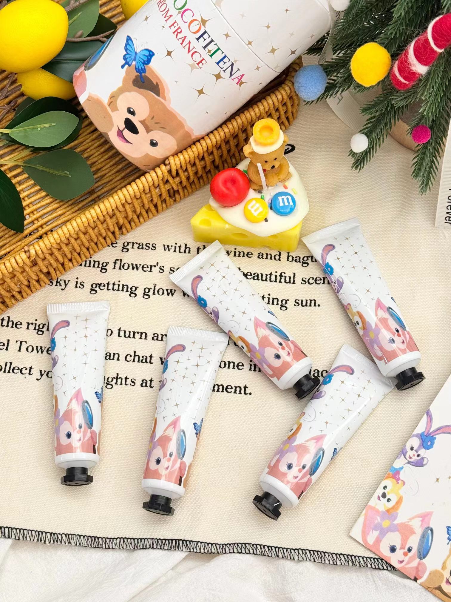 【两方联名护手霜五支装限定卡通礼盒】给各位的手来场spa吧!一盒五支装!关键光看包装就炒鸡喜欢!任性点!每天换一只涂都不心疼!入秋反正都是要用护手霜的,为啥不入这款呢,又可爱又好闻,关键还省了香水钱!不油腻不闷不粘,涂出水嫩少女手!留香时间长味道好闻又羔级,随身携带炒鸡方便!相信我别的都不如它好用!小手一牵,岁岁年年,天天抹一抹护手霜,让牵手的那一瞬间,更为心动!