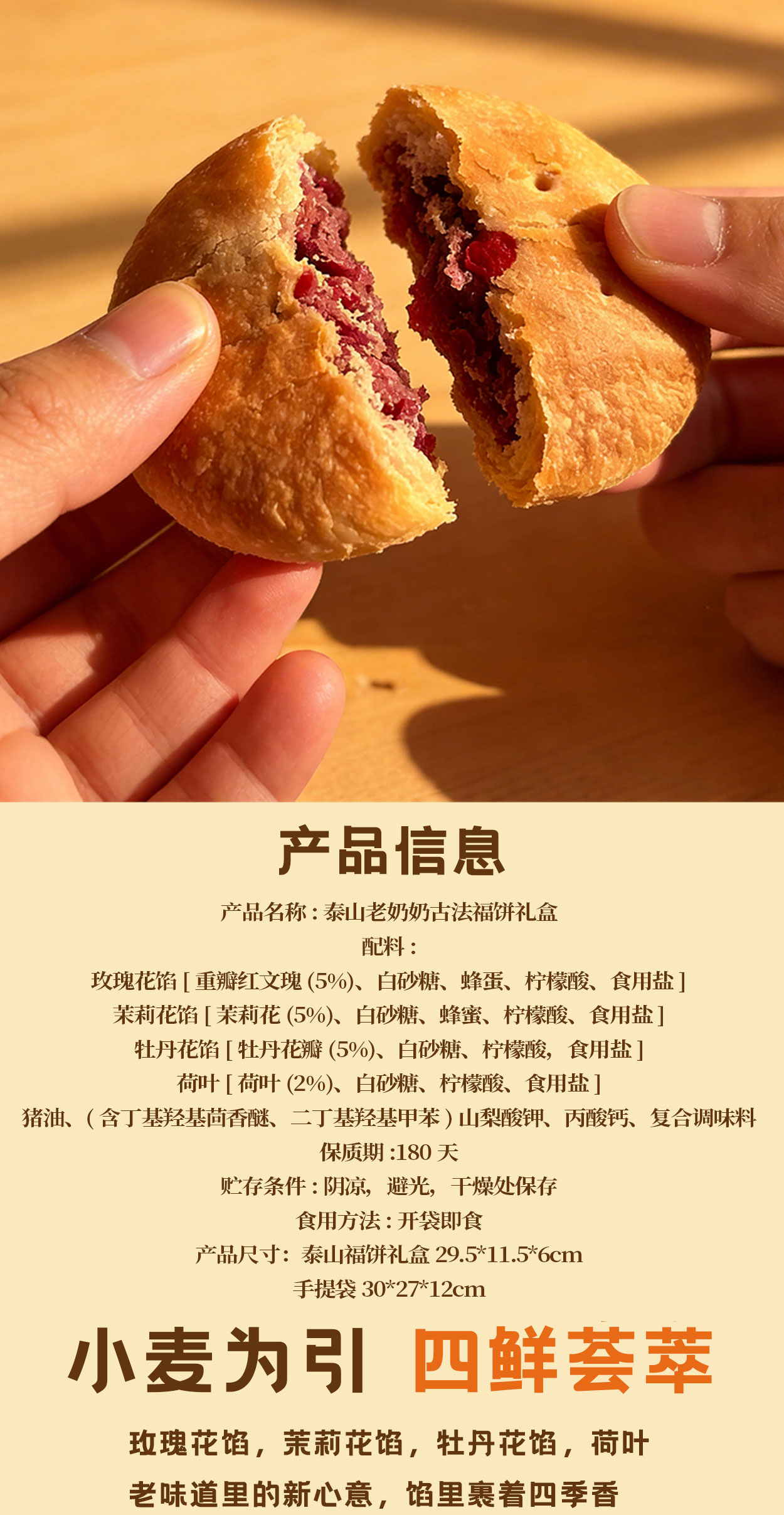 泰山特产Tai集泰山老奶奶福饼鲜花饼玫瑰花饼礼盒装送朋友零食特产