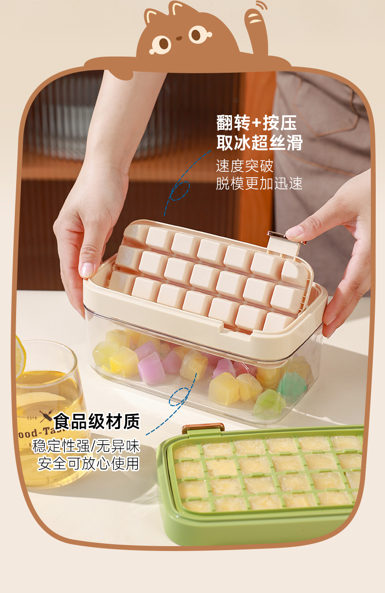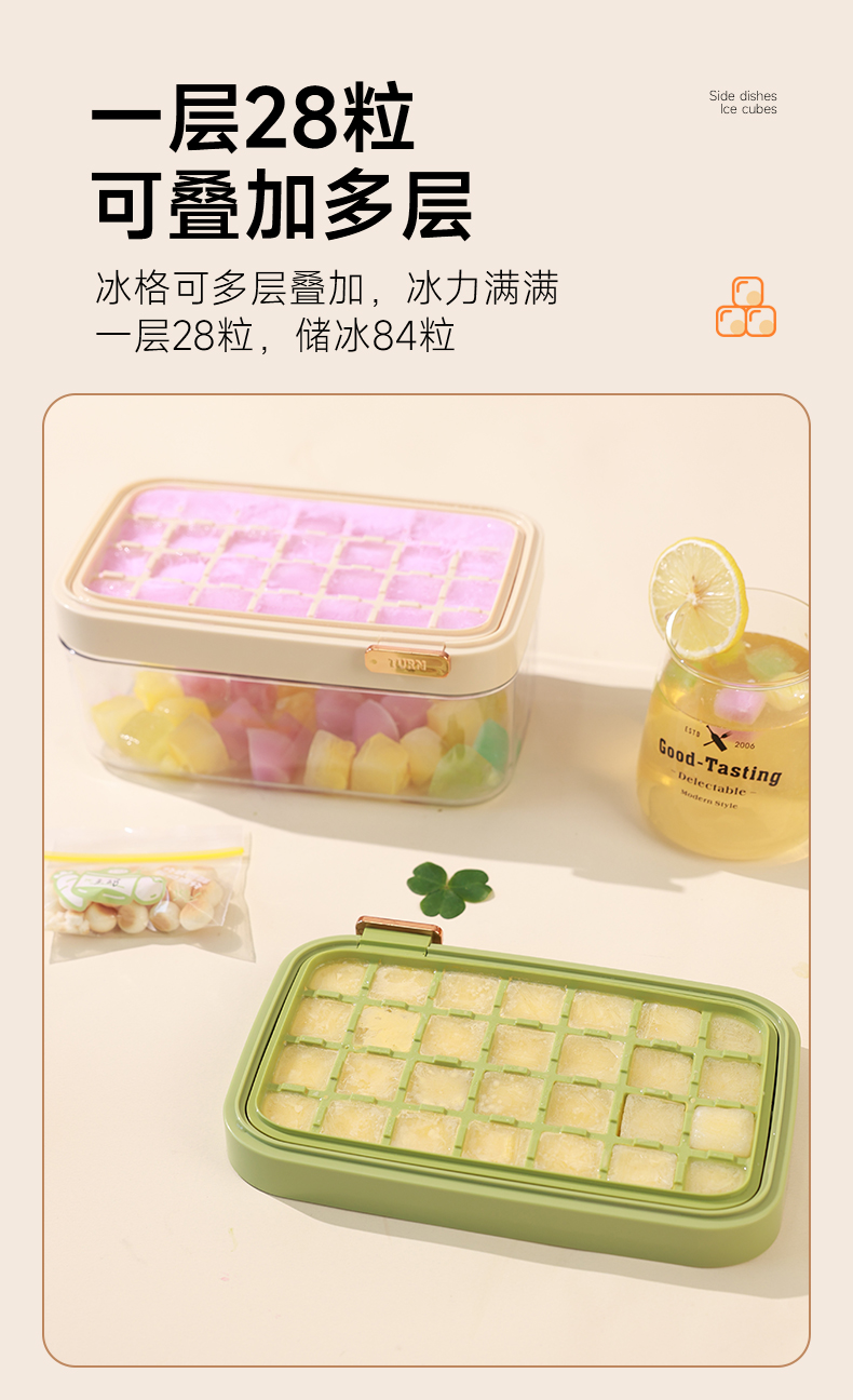 【秒格制冰盒28格】创意家用冰格大容量带盖制冰器网红神器自制冷饮速冻冰爽硅胶