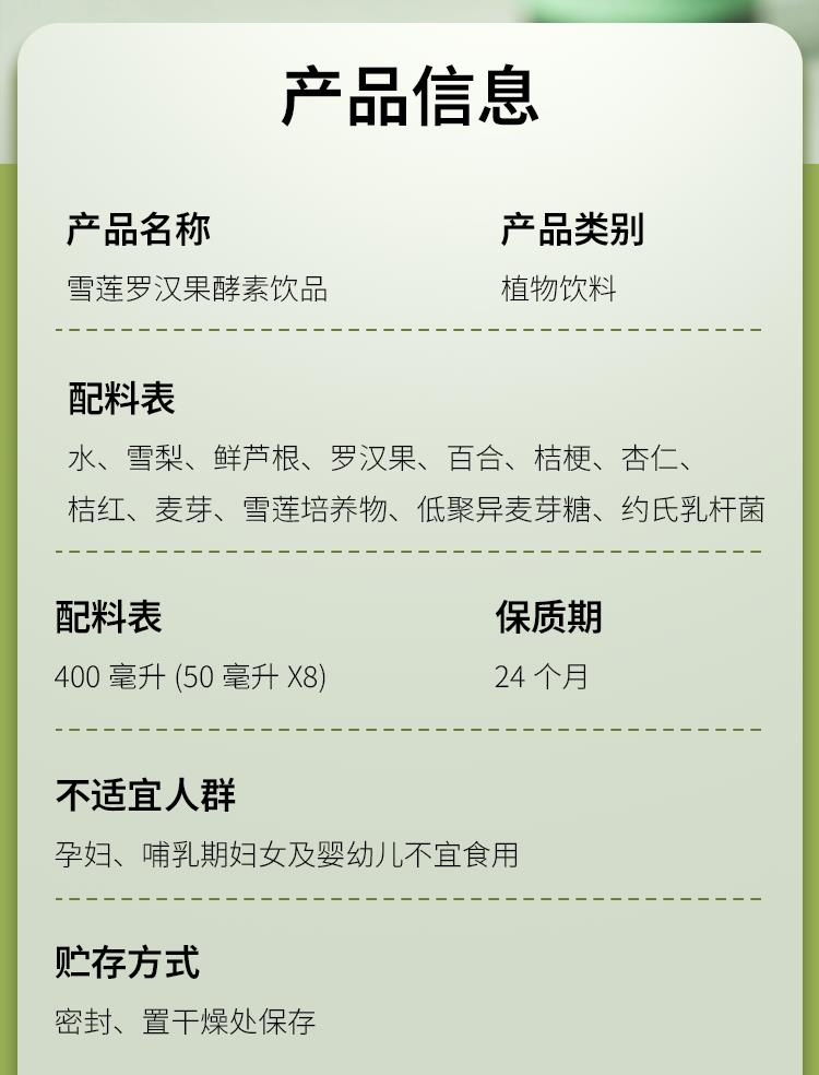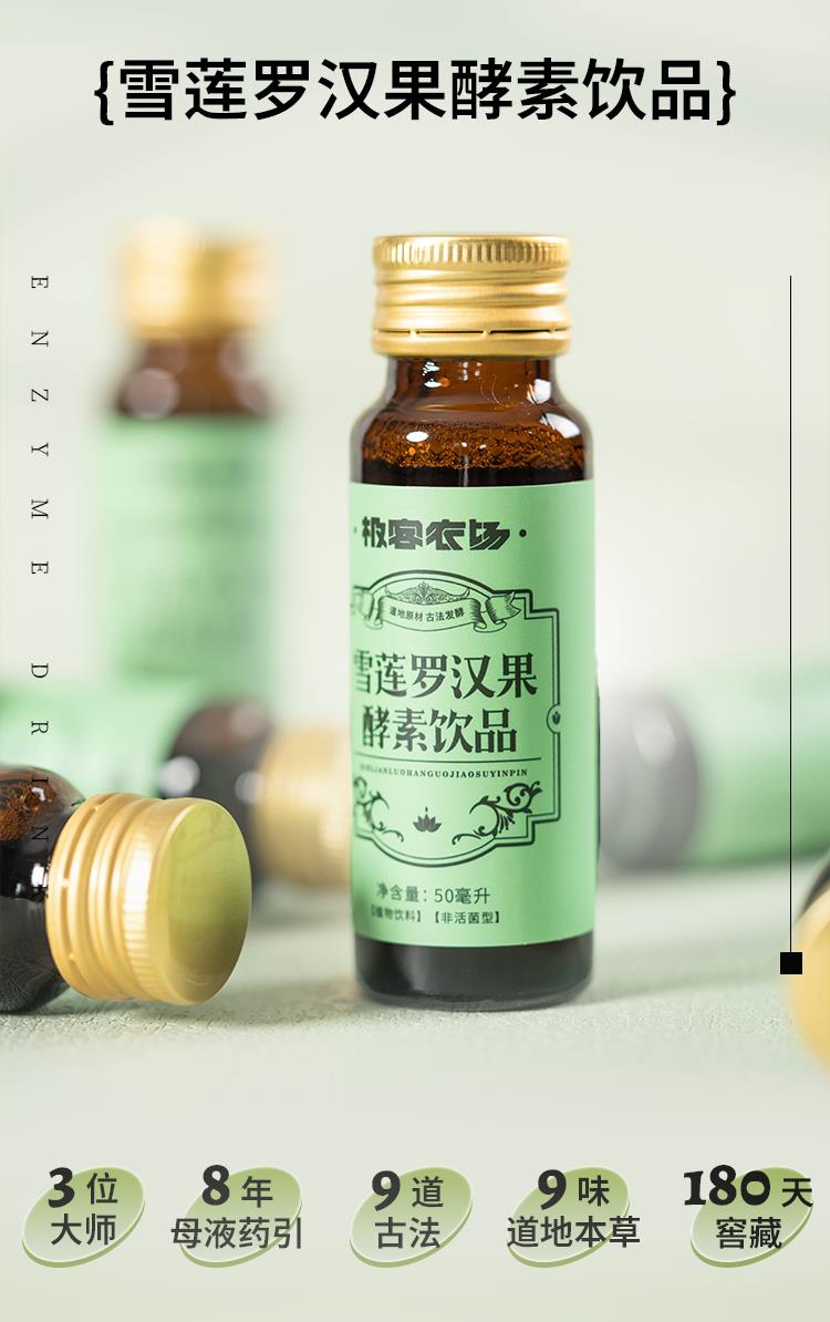 雪莲罗汉果酵素饮品| 9种草本,180天发酵而成,有利于身体吸收,温热漩涡水服用更佳,50ML*8。⭐️顺丰快递