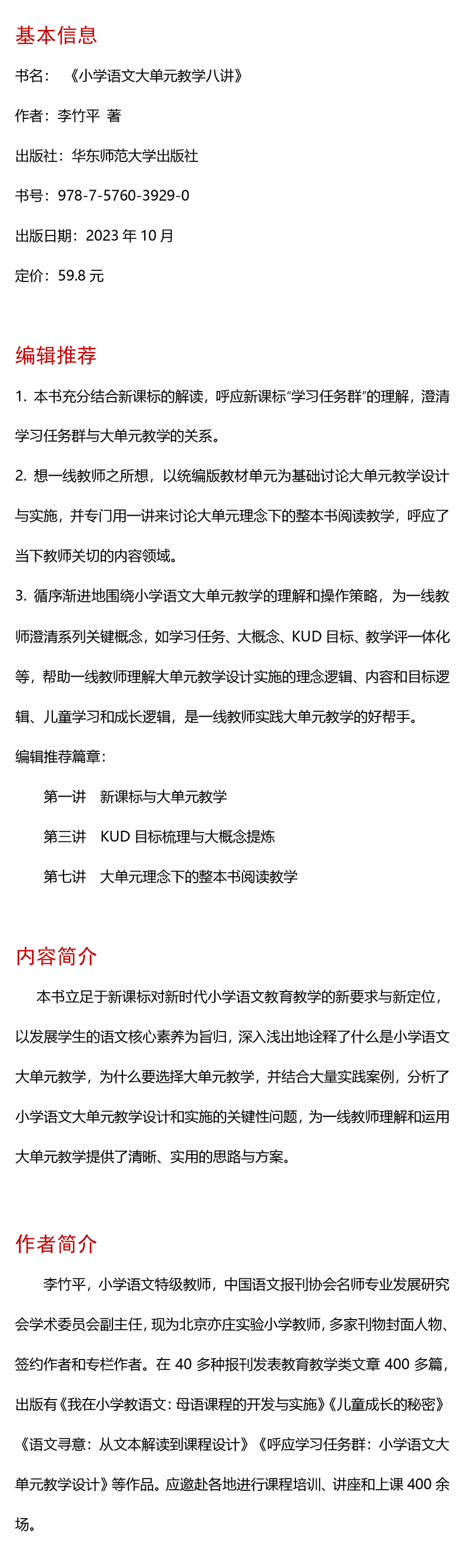 小学语文大单元教学八讲 大夏书系 语文之道 新课标解读