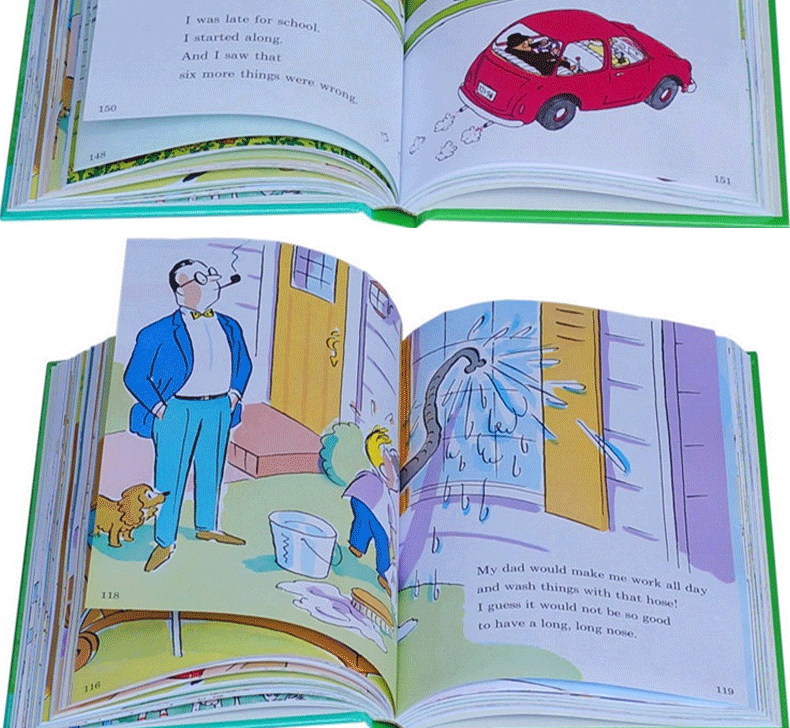 语言上的特色保留了苏斯博士的韵律性,重复性及趣味性, 插图诙谐,颜色饱和,给孩子带来一场愉快的阅读之旅。同时Beginner Books丛书的语言设计涉及了大量的韵词(Rhyming words)和重复(Repetition),因此可以把这套书作为练习自然拼读技巧(Phonics skill)的材料。