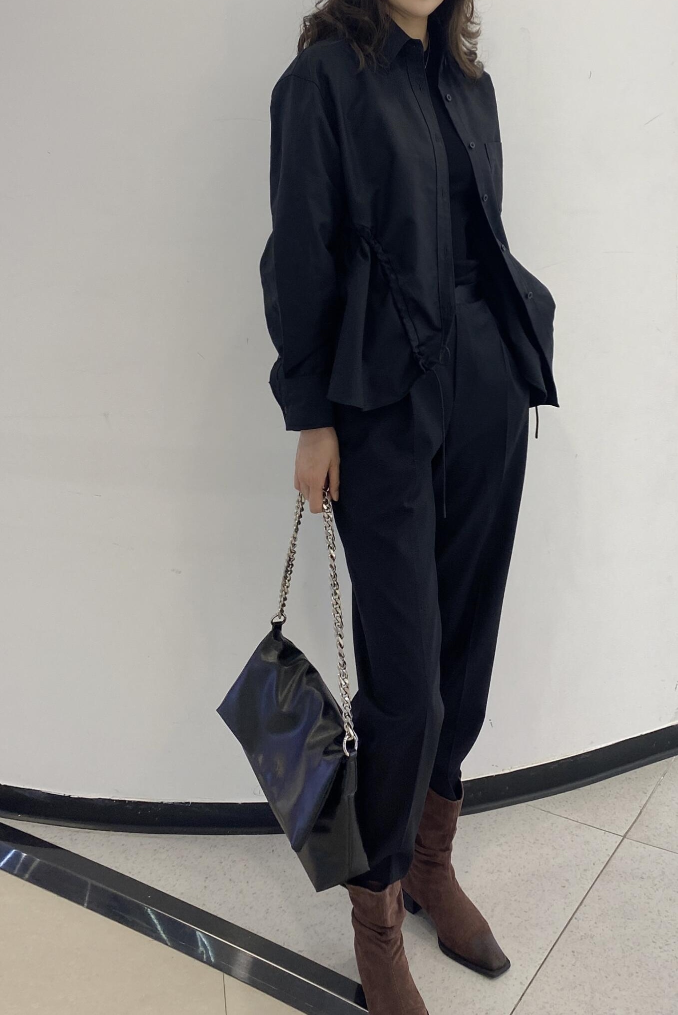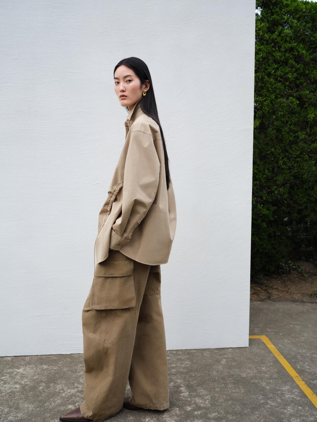 轻轻一拉,即可按需调整腰身线条,或是打造随性慵懒的氛围,时尚感拿捏得死死的。