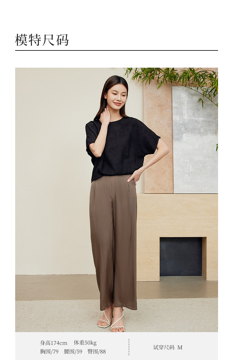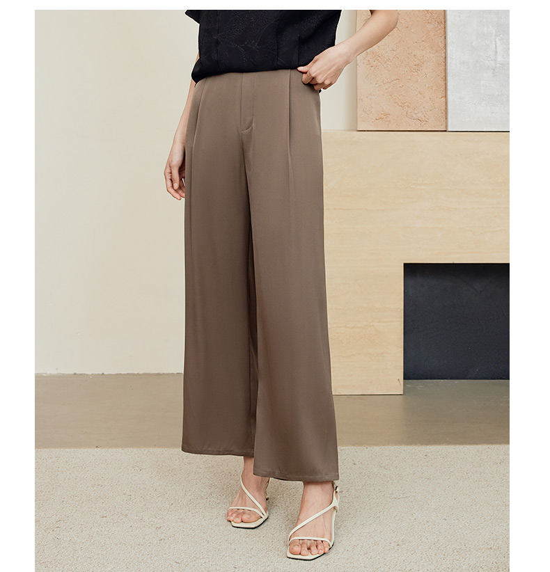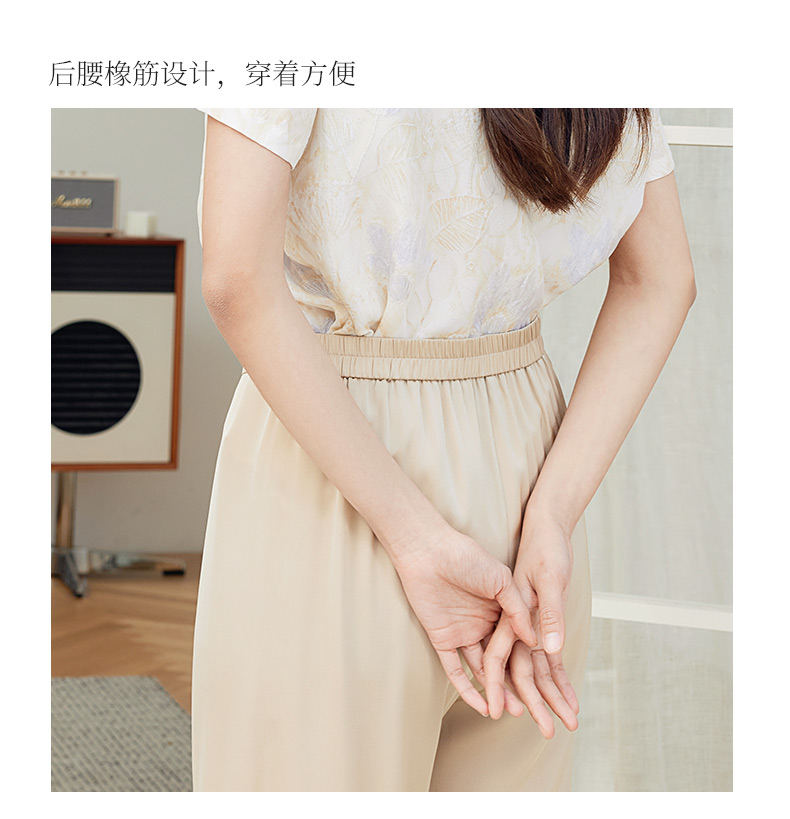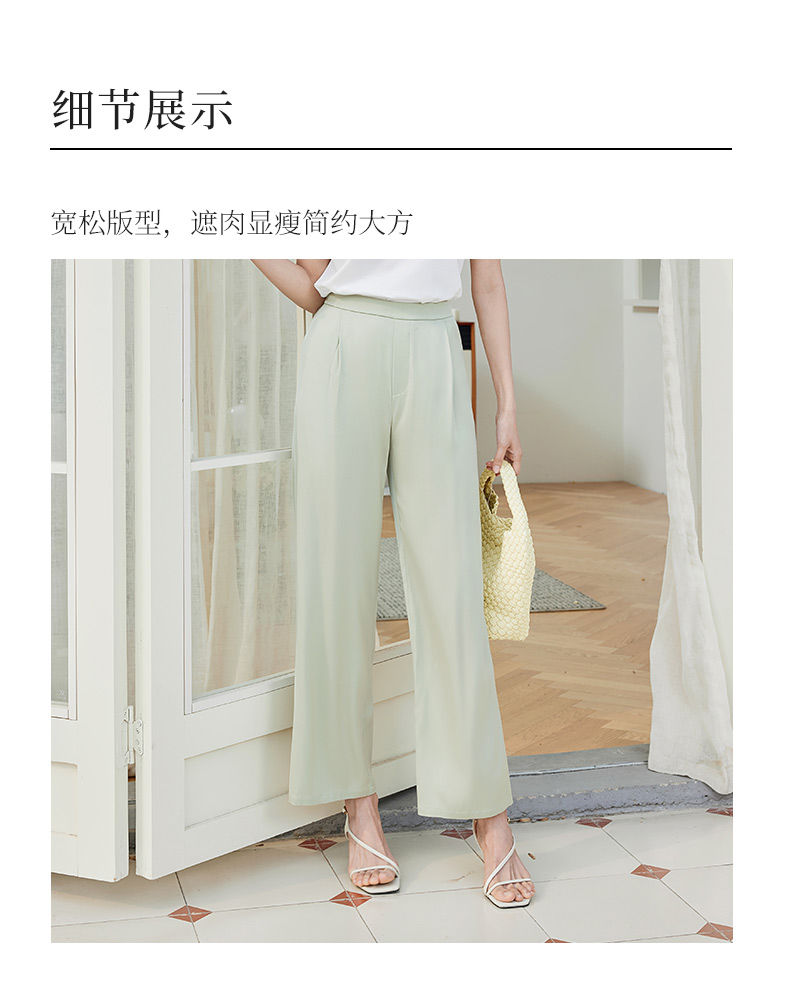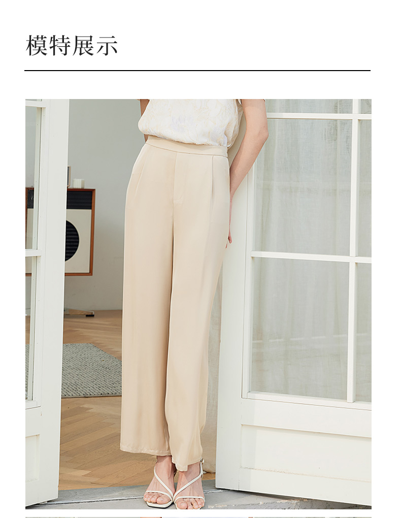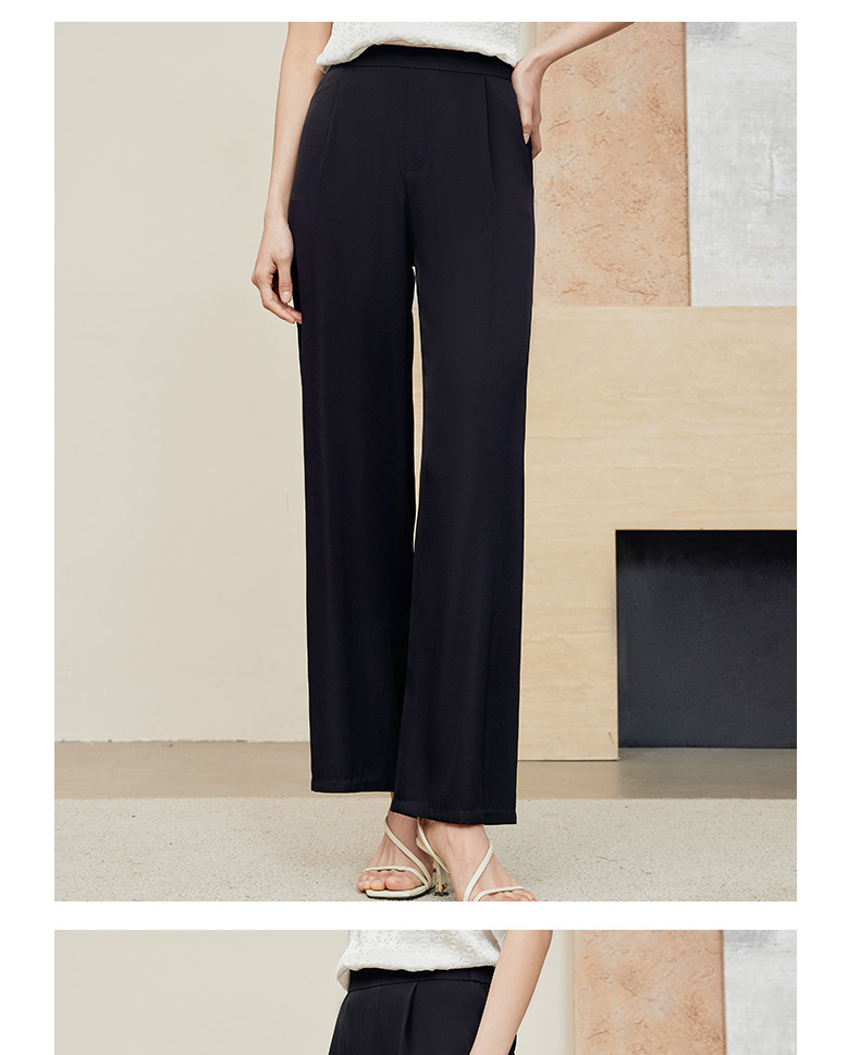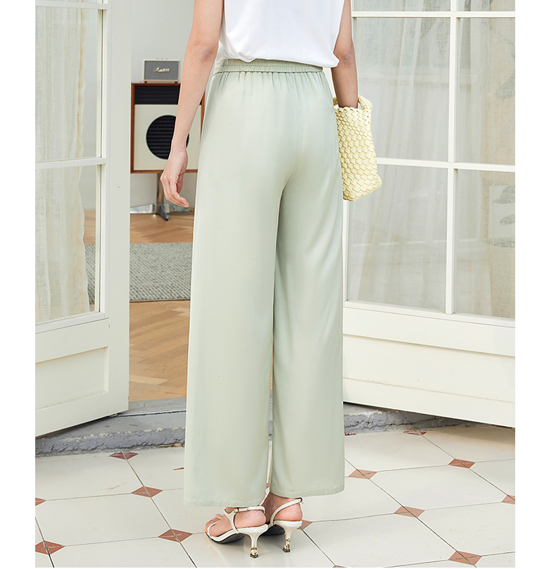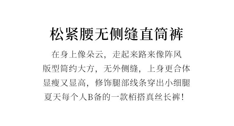 玳莎19姆米弹力双乔宽松真丝直筒裤2024春季新款桑蚕丝透气薄款简约百搭休闲裤 EB36306